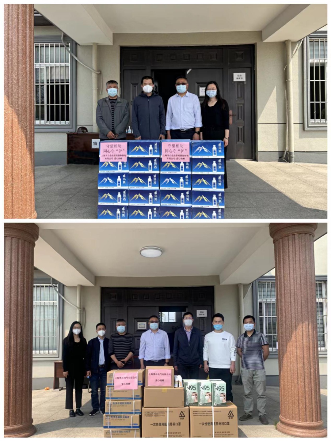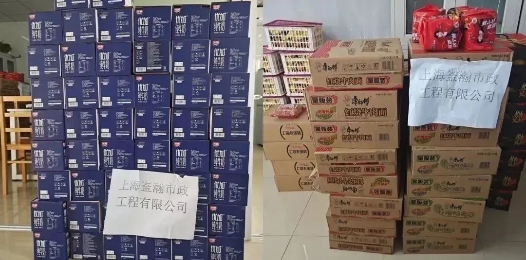 上海金山人防电气安装工程有限公司得知朱泾镇秀州村抗疫物资紧缺后,第一时间为秀州村送去物资。