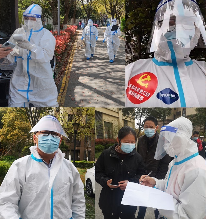 漕泾镇青创联副会长、上海金漕门业有限公司总经理曹丹积极响应号召,在所在小区内就地转为了志愿者,全力配合做好疫情防控工作,与志愿者们一起,齐心协力,同心“抗疫”,共同守卫美好家园。