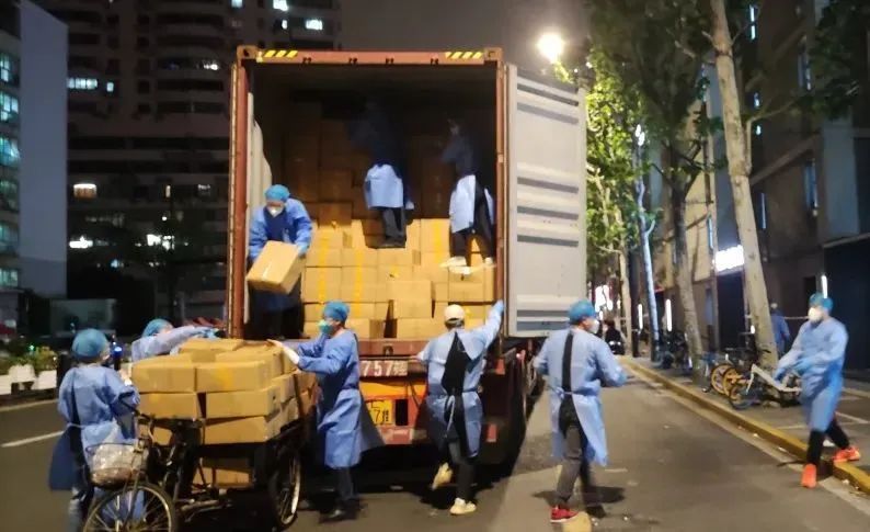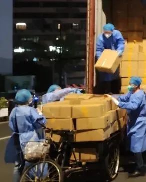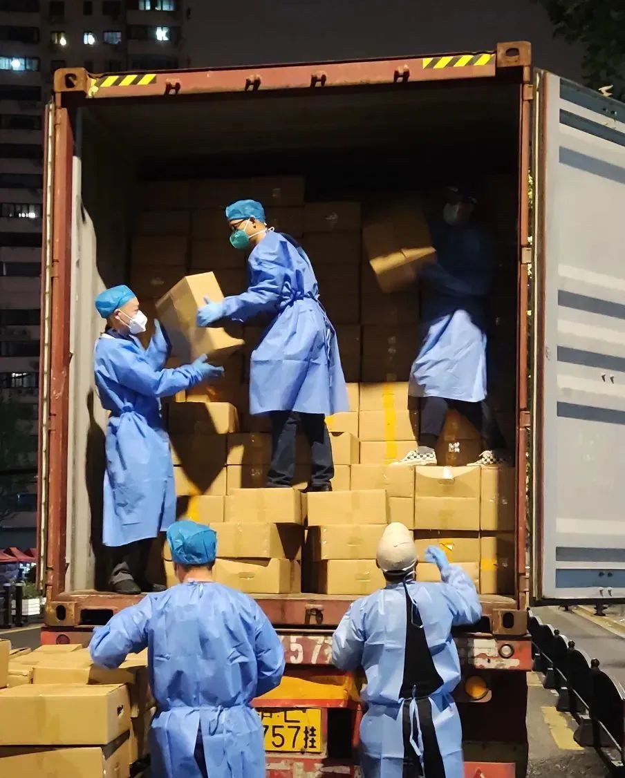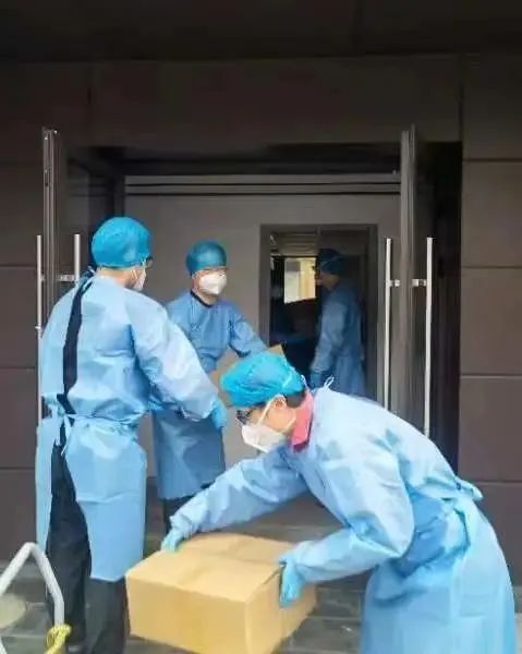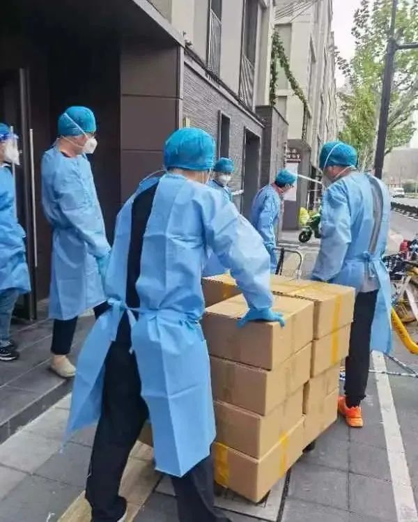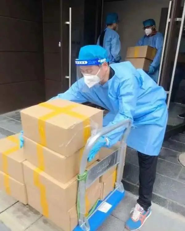 ✦ 次日早晨,突击队紧张有序地将所有物资无接触分发给租户。搬上搬下、手手相传,物资经过一次次传递到达家家户户的门前,暖心与安心也送到了租户的心间。