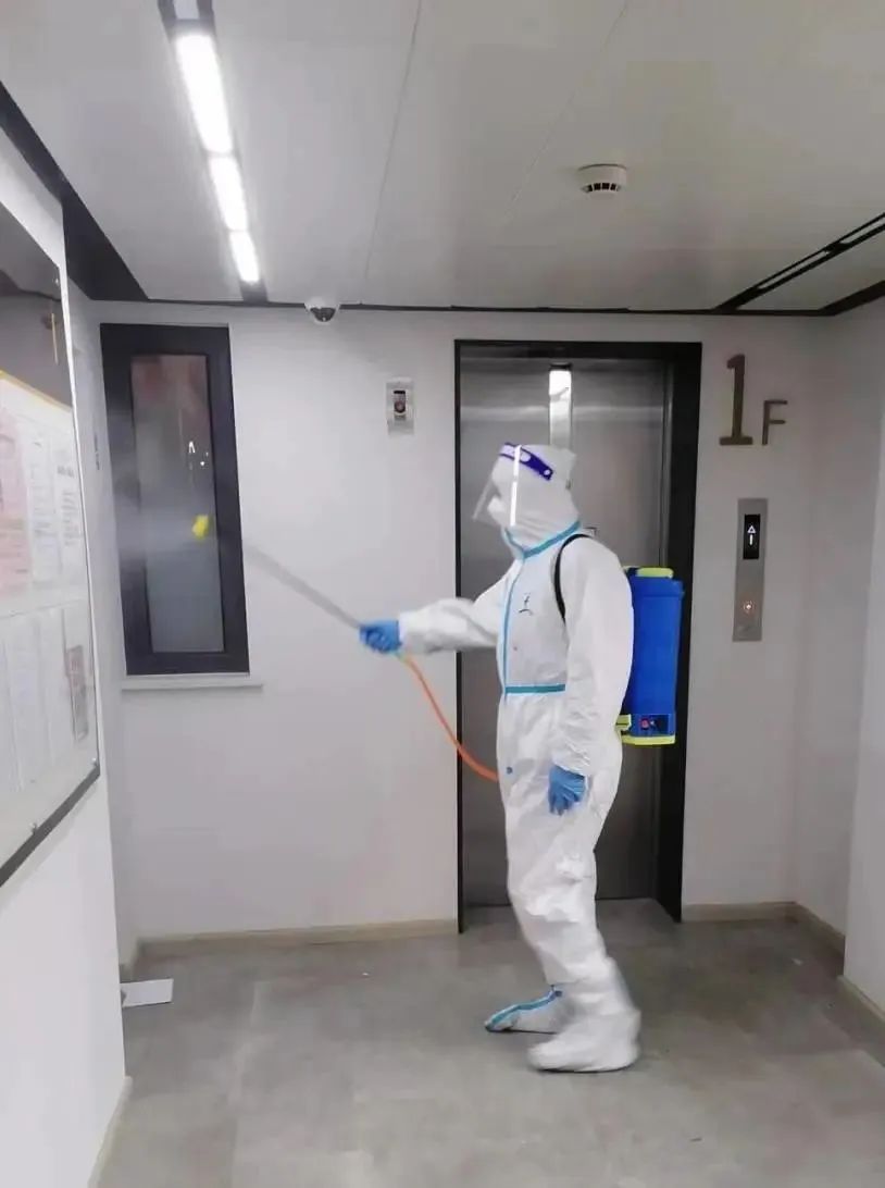 ✦ 本轮疫情以来,每天15时,员工准时背着15公斤的消毒器,一幢楼五个楼层,逐层喷洒消毒水,不遗漏角角落落。一幢楼的消杀任务完成时,已经是汗流浃背,累得只想坐下歇歇。但他们却总是步履不停,径直前往下一幢楼继续消杀……南房人时刻待命、全力付出,愿能够早日打赢疫情防控战。