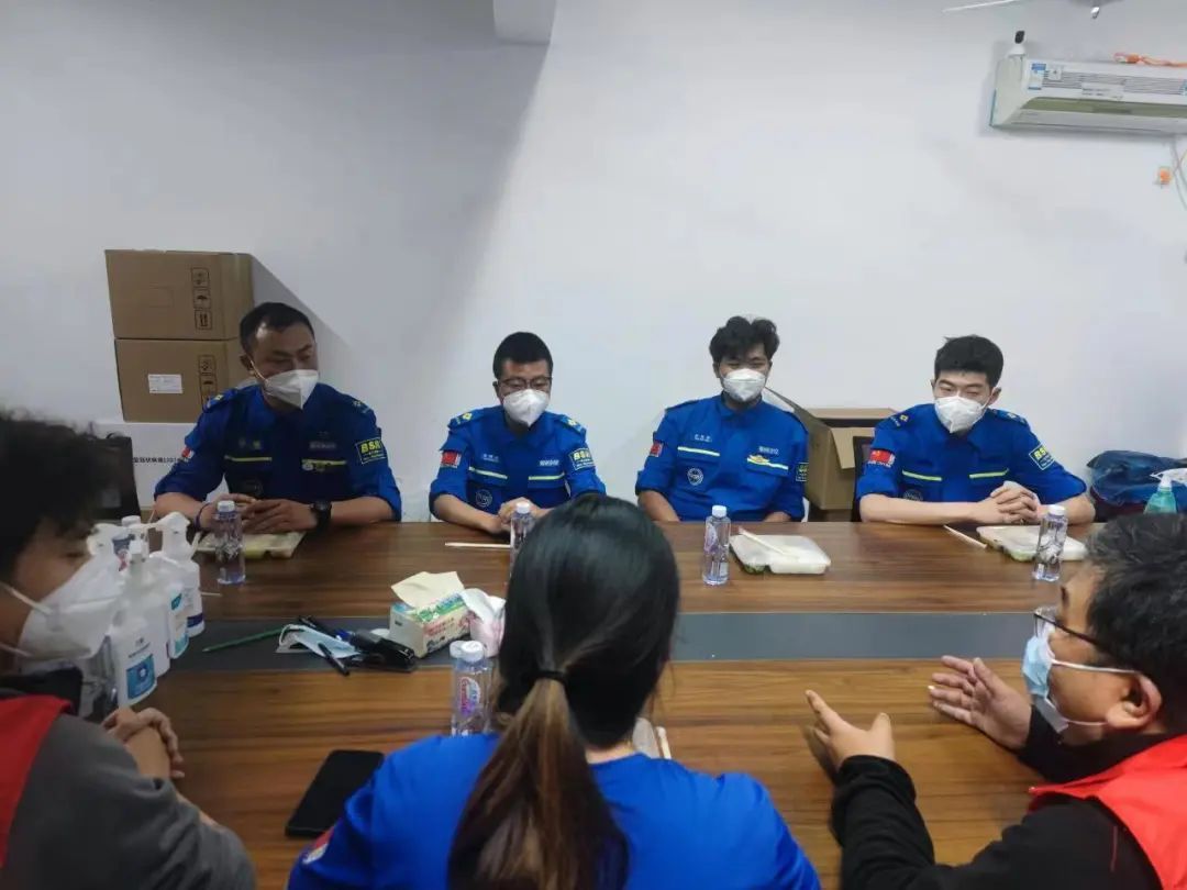为了确保整体抗疫工作的顺利进行,作为临时党委成员的民防干部王东波主动作为,积极动脑筋、想办法,第一时间联系市民防防护救援志愿服务总队,辗转联系上上海蓝天救援队