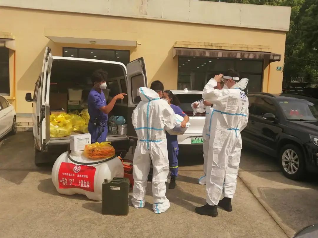 4月26日晚上10点,横沔社区翘首以盼的队伍终于抵达,他们来自湖北,参与2020年初的武汉抗疫后,又多次支援全国各地开展病毒消杀工作,极具消杀经验。这支消杀队队长由一位干练飒爽的姑娘担纲,队员们全部都是精壮帅气的小伙子,年龄从26岁到33岁不等,大都具备部队服役经验,可谓专精兼备。他们从早上6点出发,一路上马不停蹄直奔上海,带着全套消毒设备。这次任务,他们将在康桥停留十余天,帮助开展封控楼道和公共环境专业消杀,为康桥地区的防疫工作再加上一道安全闸,挂上一把安全锁。