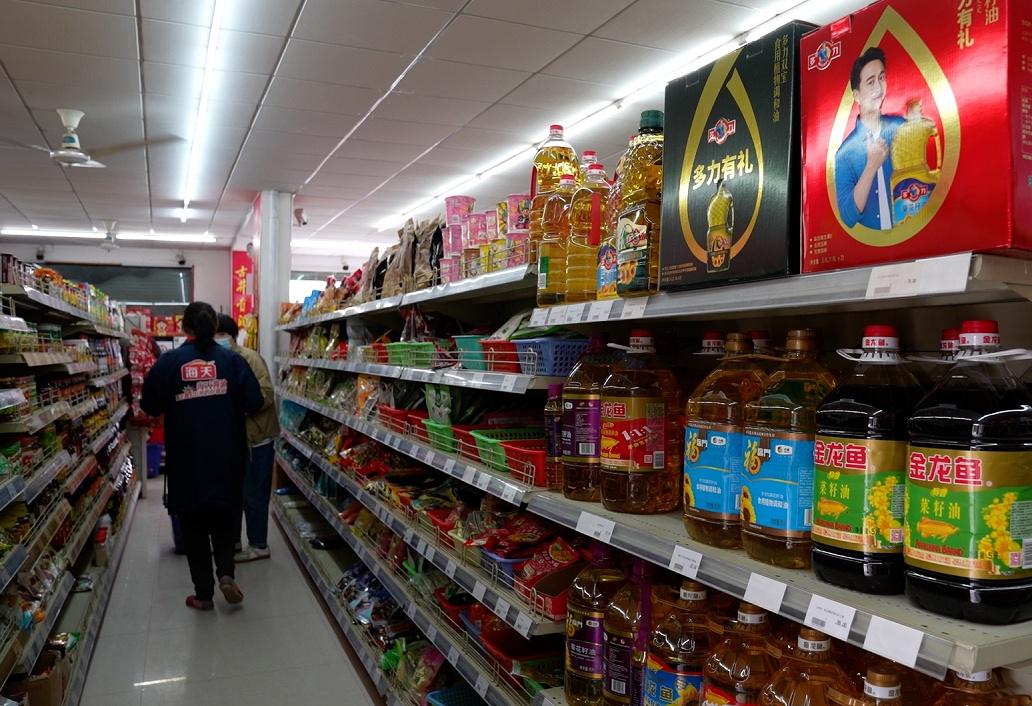 该便利店虽然规模较小,但是进入店内,记者看到货架上的物品摆得满满当当,除了米面粮油外,水果、牛奶、零食等商品一应俱全,基本满足了居民个性化选择的需求。