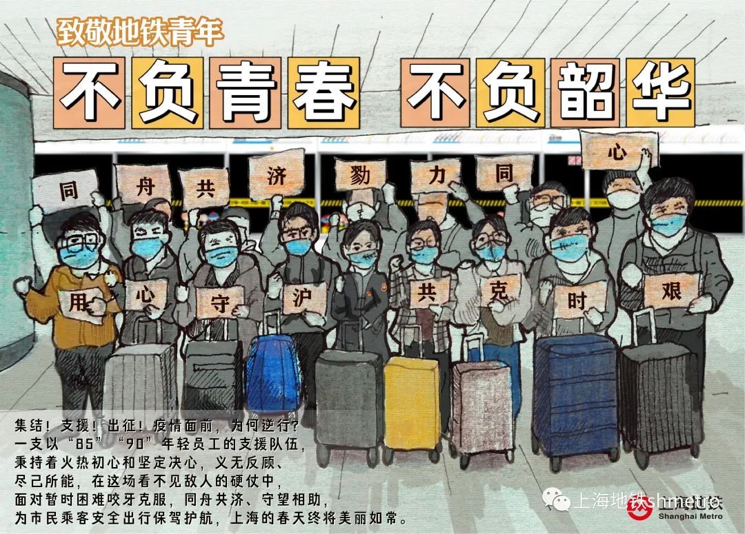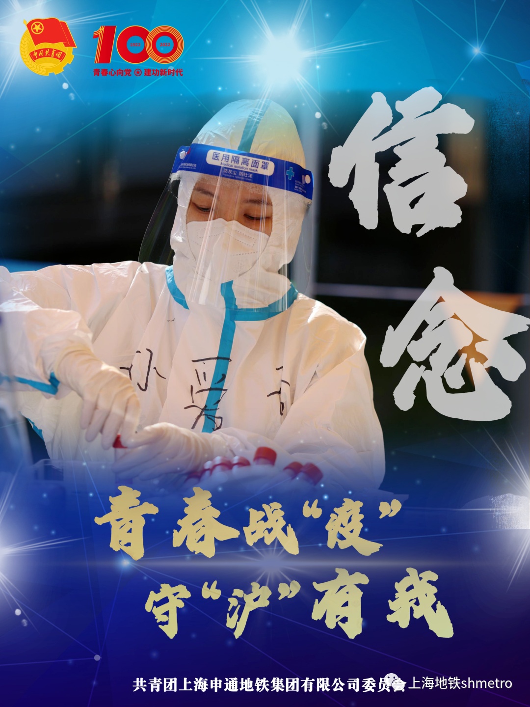 上海地铁青年的身影不断穿梭在岗位一线和社区防疫工作之中,是“坚守、信念、奋斗、使命、担当……”等等一系列词汇的具象化展现。建团百年,青春正好!让我们紧跟党旗号令,奋勇拼搏!愿上海地铁青年继续保持朝气蓬勃、奋发有为的精神面貌,秉持逢山开路、遇水架桥的大无畏精神,紧紧跟随党前进的脚步,迎难而上。愿吾辈青年都能摆脱冷气,有一分热,发一分光,冀以萤烛之光,亦可增辉日月!