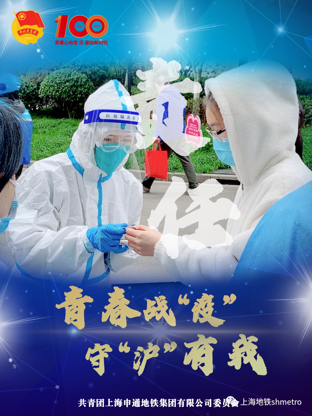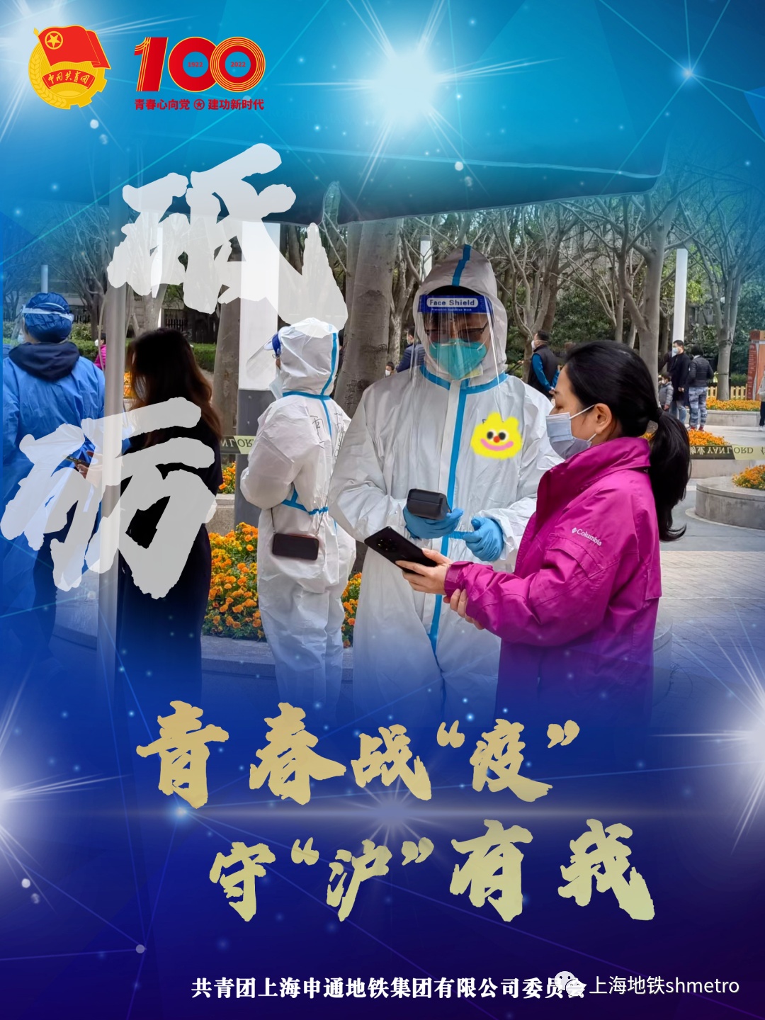 在建团百年之际,上海地铁青年积极响应党的号召,临危受命,毅然投身抗击疫情行动。在疫情防控阻击战中,不惧危难、冲锋一线、勇担重任,无论是在坚守一线岗位上,还是在防疫志愿服务中都贡献了自己的青春力量!