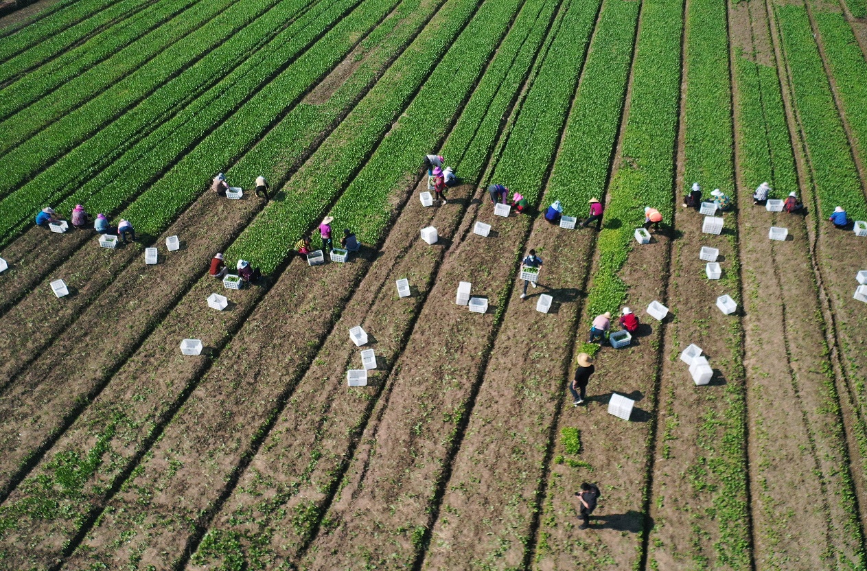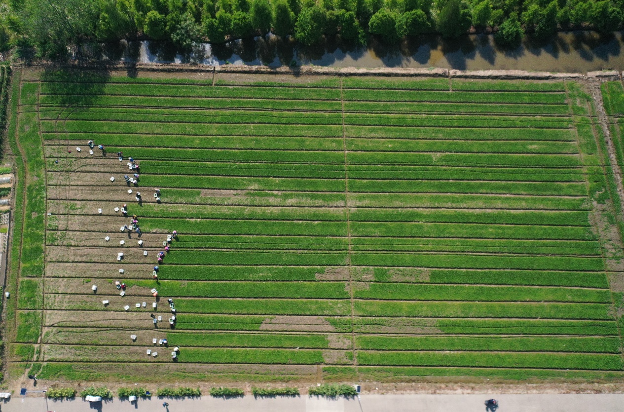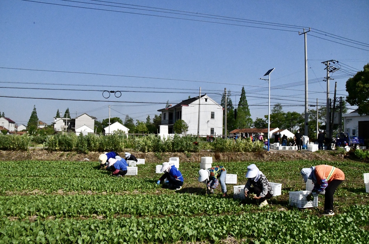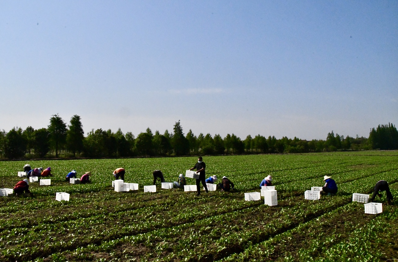 5月4日,在上海臻岛禾粮食种植专业合作社种植基地内,约50名工作人员正穿梭于农田之间,忙着抢收蔬菜。此次,该基地选取了560亩水稻田抢种蔬菜。“通常水稻种植都要到每年6月,我们正好可以利用水稻‘空档期’播种绿叶蔬菜,缓解市民餐桌需求。”工作人员告诉记者,抢种区域内以种植小青菜、杭白菜为主,正是上海市民喜爱的速生型绿叶菜品种,经过30天左右生长周期即可上市。