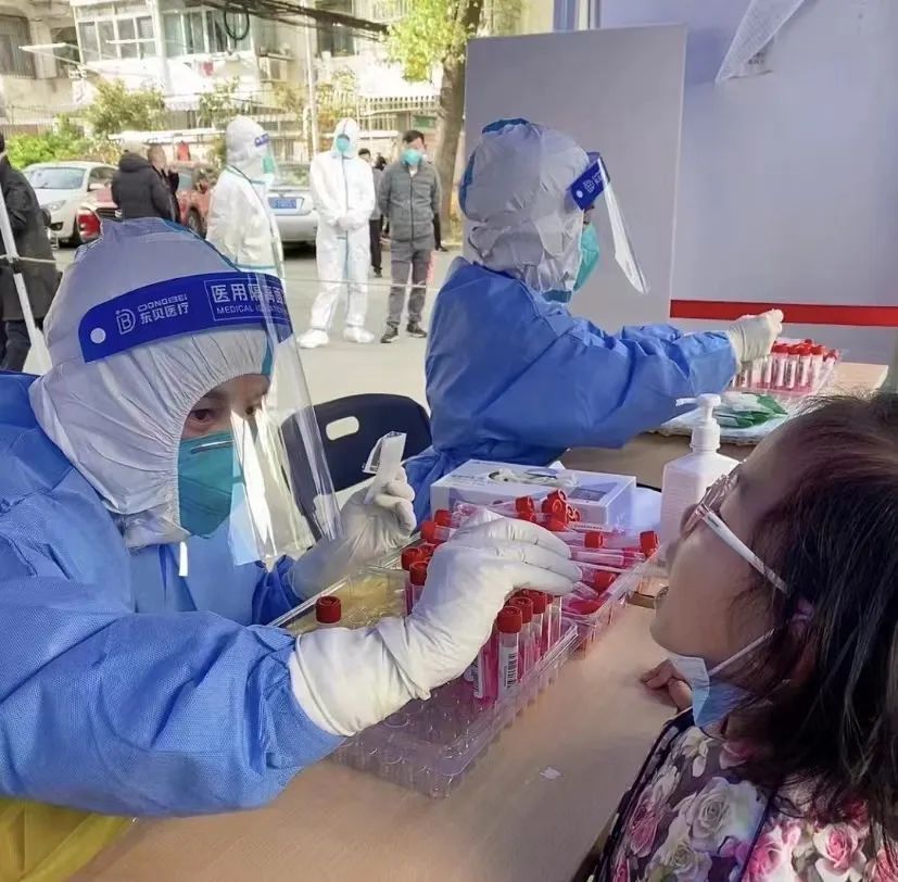 3月下旬她被封控在小区,发起并加入到小区临时核酸采样队,就地转岗成“大白”,联合小区6名医护相关背景的居民,在社区初期筛查采样人员紧张时,解“燃眉之急”,顺利完成了3000名居民的核酸采样任务。