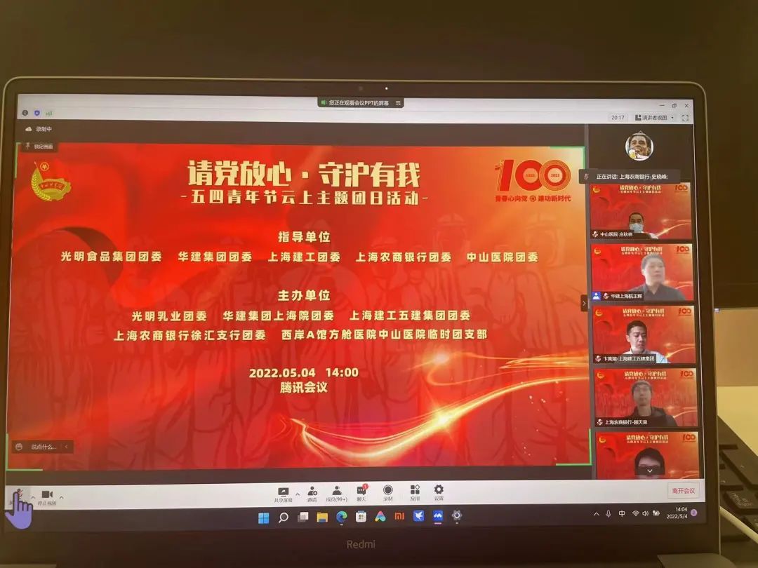徐汇西岸A馆方舱医院主办了“请党放心·守沪有我”五四云上主题团日活动。舱内青团社广播站播放《闪光如你》的五四专辑活动,医务青年们与青年志愿者们同唱歌曲 《闪光如你》,一起为中国的“闪光青年”点赞。