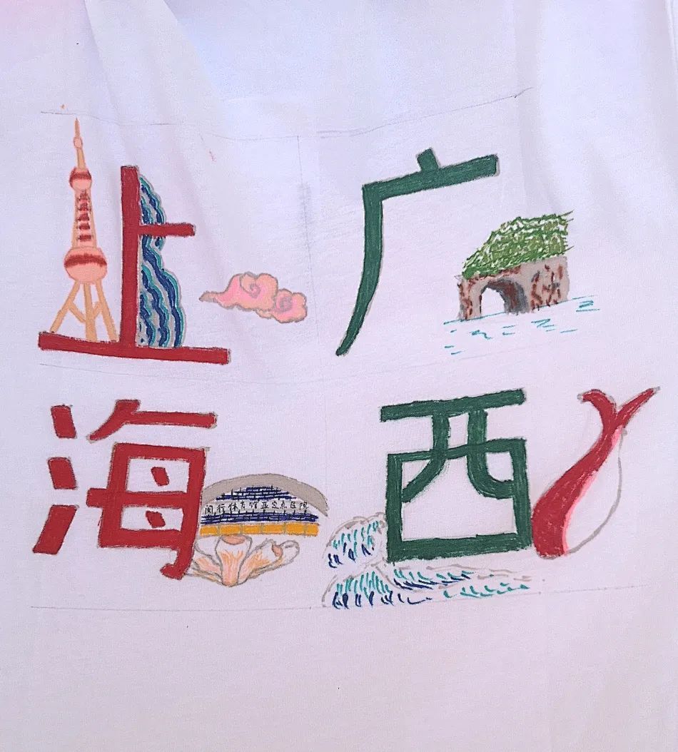 青年代表刘盛东和韩璐也讲述了自己的故事和决心。沪桂两地的青年们用彩笔画出心中颜色,“大鱼海棠”、“生煎包和螺蛳粉”、“革命人永远是年轻”等各种抗疫、青春元素通过大家的DIY创意,在T恤上绘出了一幅幅朝气蓬勃、青春向上的作品。活动结束后,各个优秀作品将会参加评选和展示。