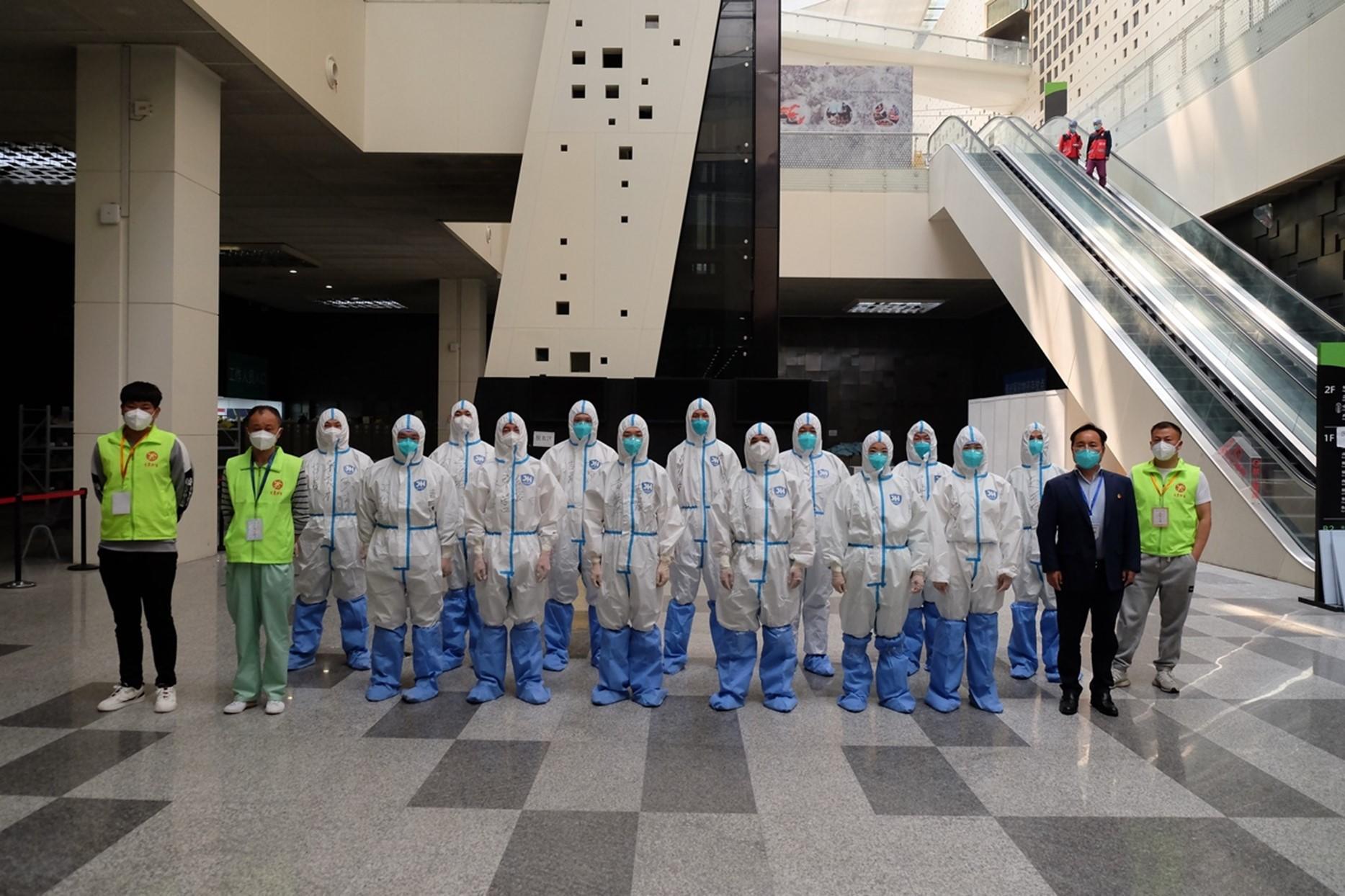 改建成方舱医院的城市足迹馆,最大接纳量在2300人左右,全部用于收治来自黄浦区的轻症和无症状感染者。吉晨卫生在副总经理刘卫文的带领下,火速集结员工抵达方舱开展一系列后勤保障工作。全体后勤员工分为两个班次,轮流进舱,并在每层楼设立组长,配备领队对讲机,分别与项目负责人进行点对点沟通,分工明确且高效。