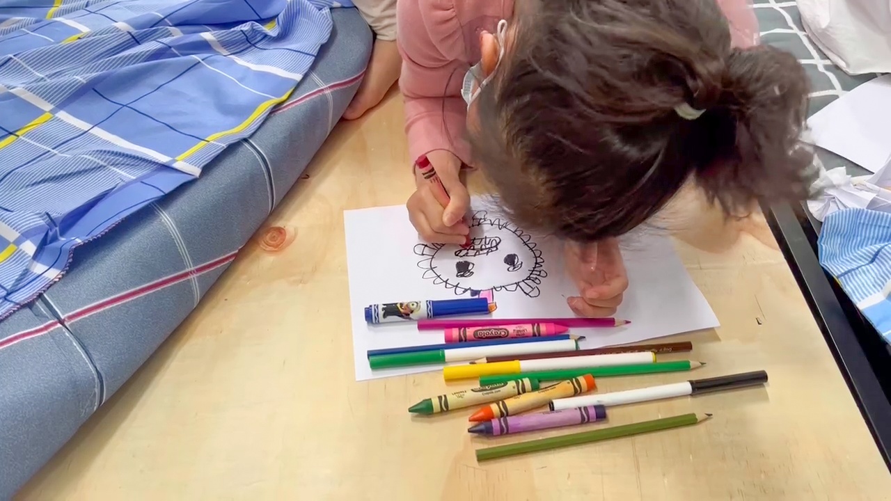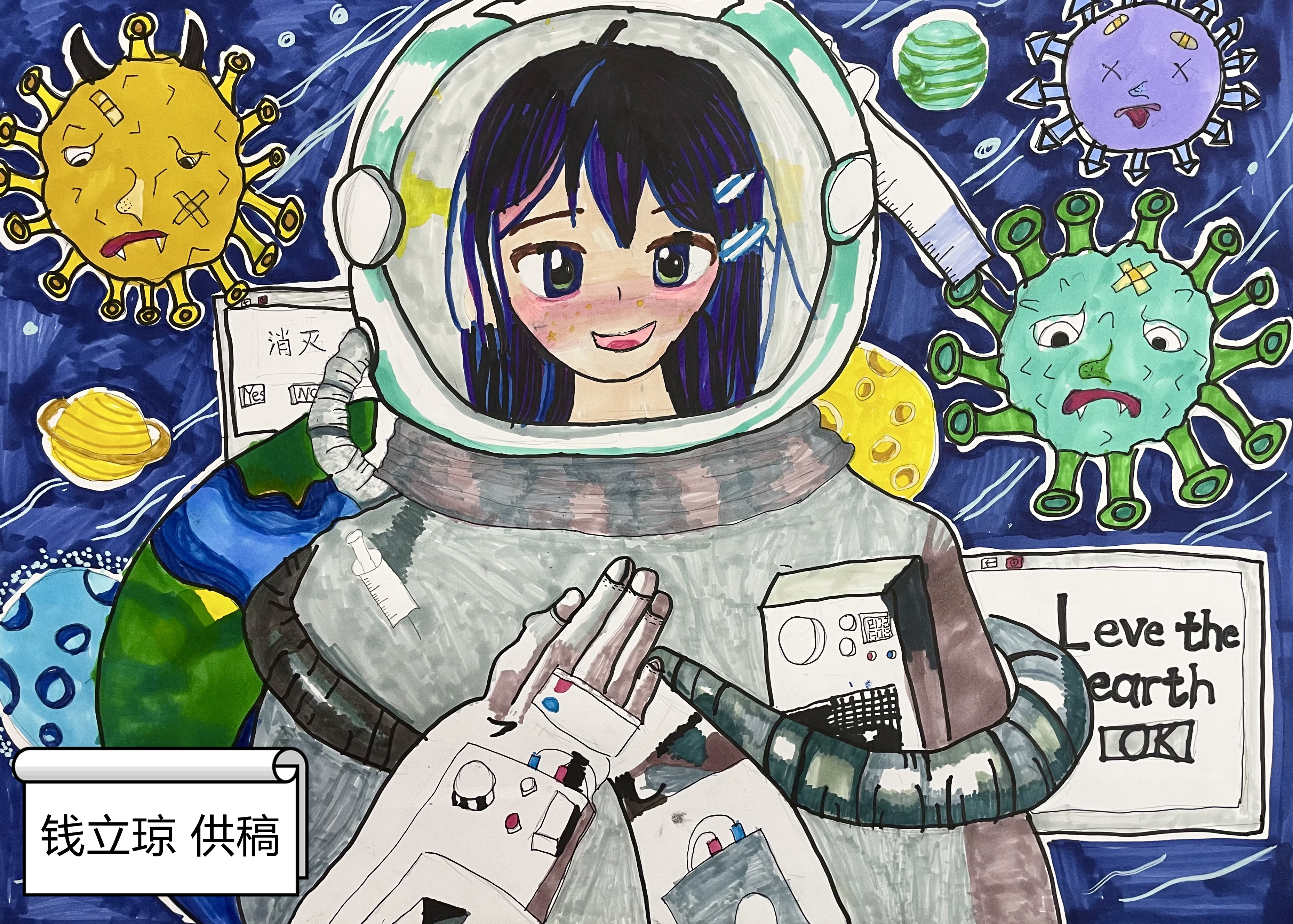 作品展在“静·爱”号方舱线下展出期间,多位进入方舱的小朋友在拿起画笔,画出对方舱里的医护人员和志愿者们的感谢,画出心中对明天的期待和祝福。