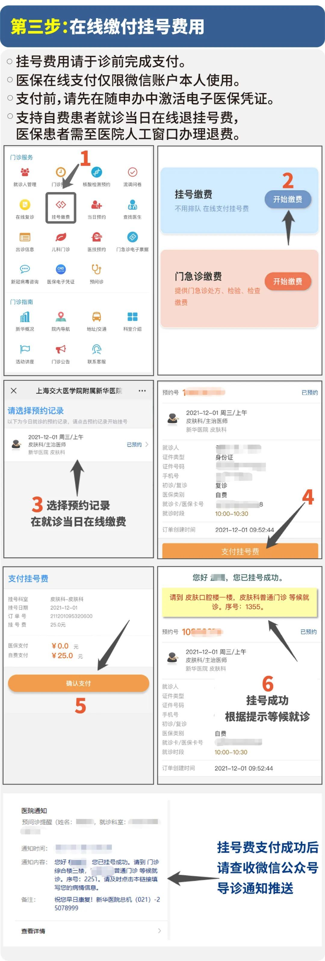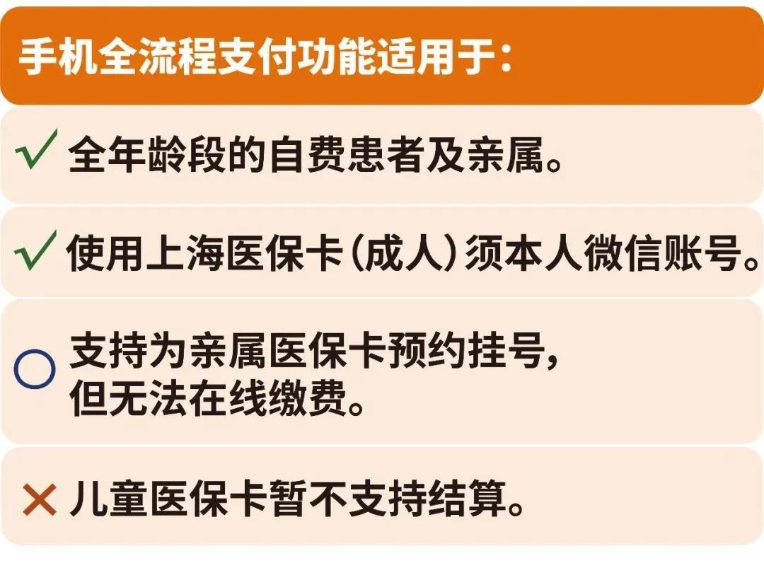 预约挂号、各类缴费、在线建卡、复诊绑卡……凡是持新华医院自费卡、本市成人医保卡患者均可实现手机全流程支付。
