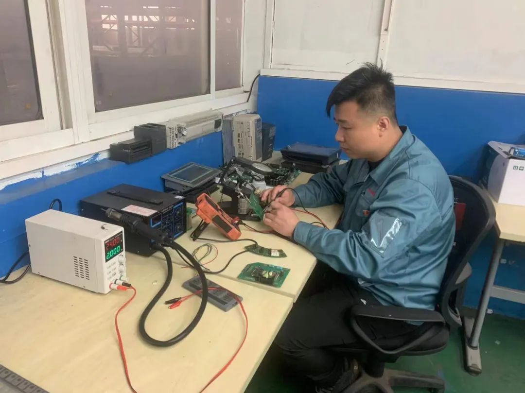 冠华研发部带头人周胜勇是公司工程部副经理,是公司电气维修方面的“技术大拿”。电气设备是否出现故障、厂区水电路能否安全运行、车间运作是否顺畅……每天一早,换上工装的周胜勇总是习惯性地去车间转一转,检查各种电气设备的工作情况,以保障生产的正常进行。