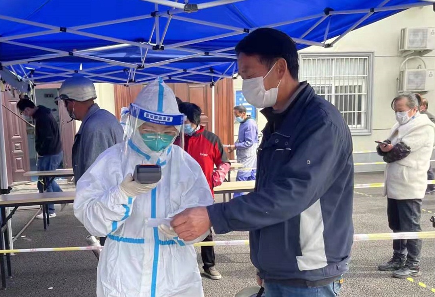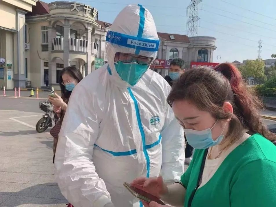 屠海萍:“我是一名00后学生,更是一名预备党员。穿上防护服后一次次的抗疫任务让我深感“使命”的重要性、坚定性。无论是扫描核酸码还是为村民代配药,能为疫情防控奉献自己的一份努力使我感到无比自豪。作为朱泾镇牡丹村的志愿者,从刚开始的手足无措到现在的熟能生巧,离不开村委会“战友们”的鼓励支持,在我们共同努力下,改进了代配药流程,节约了配药时间,使医生能有更多时间,服务更多市民。我为中国加油,为上海加油,为自己加油!”