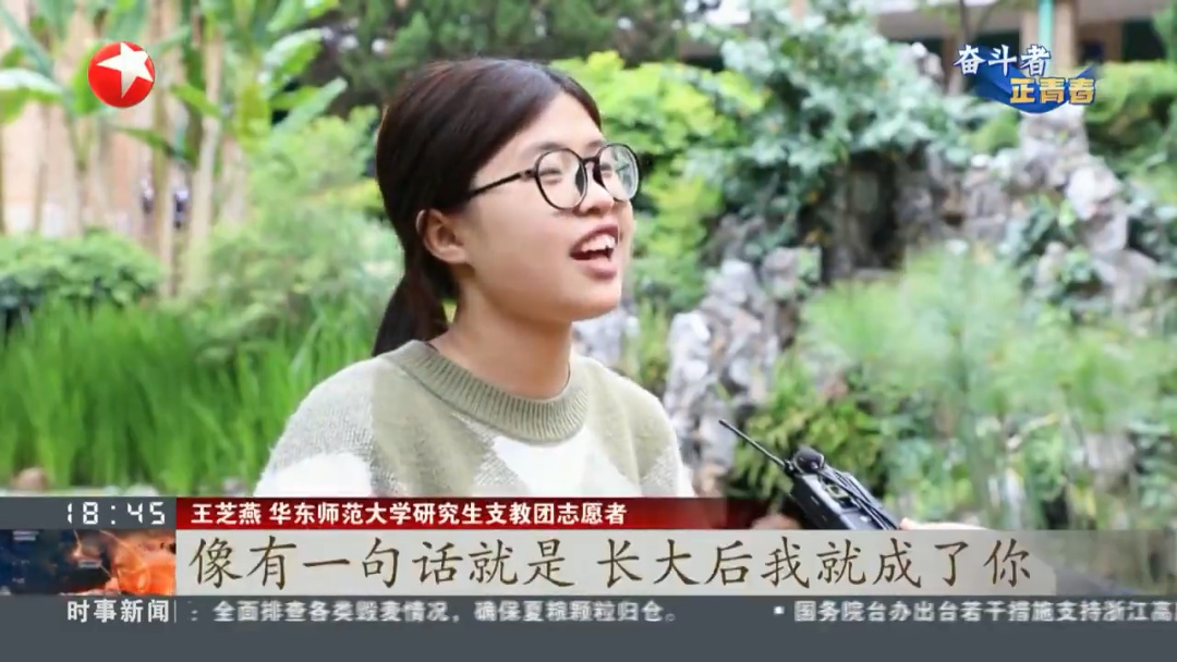 华东师大研究生支教团志愿者王芝燕说:“有一句话是:‘长大后我就成了你’,我以后也会把接力棒交给下面的学弟学妹们。”