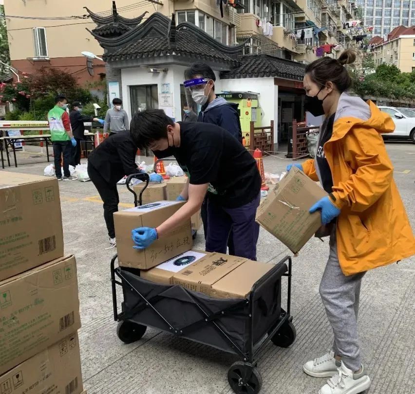 “嘀嘀……”伴随着几声清脆的喇叭声,有一批生活物资抵达虹储居民区门外。推着宝宝的小推车,“90后”宝爸宝妈徐翰翔、许文华便加入到物资发放的队伍中。