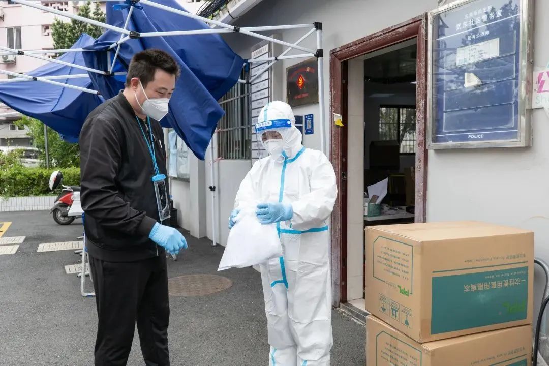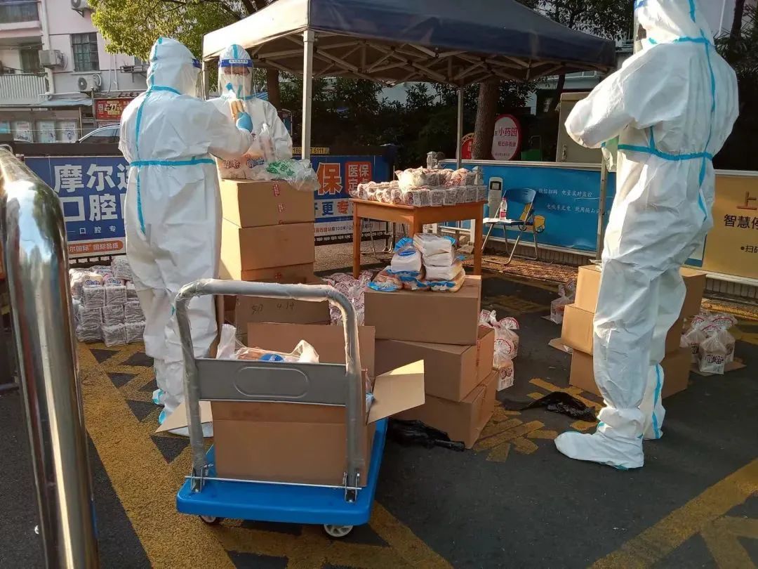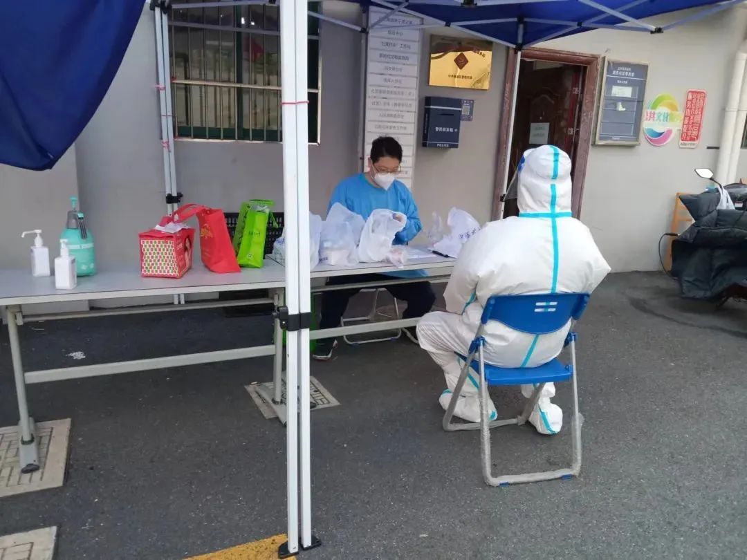 除此之外,方国强有时还会协助居委干部和其他志愿者一起为小区部分老人分发街道送来的一日三餐。保障供应组组员也会协助居委会完成核酸检测工作,配合物业做好小区楼道的消杀工作。