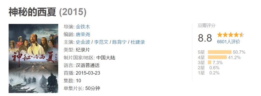 大型史诗纪录片《神秘的西夏》以近些年对西夏学的最新研究成果为基础,以西夏王朝从兴起到灭亡的发展过程为历史线索,运用当今最先进的电视表现手段,对西夏的历史文化做了一次最全面、最综合的展现。