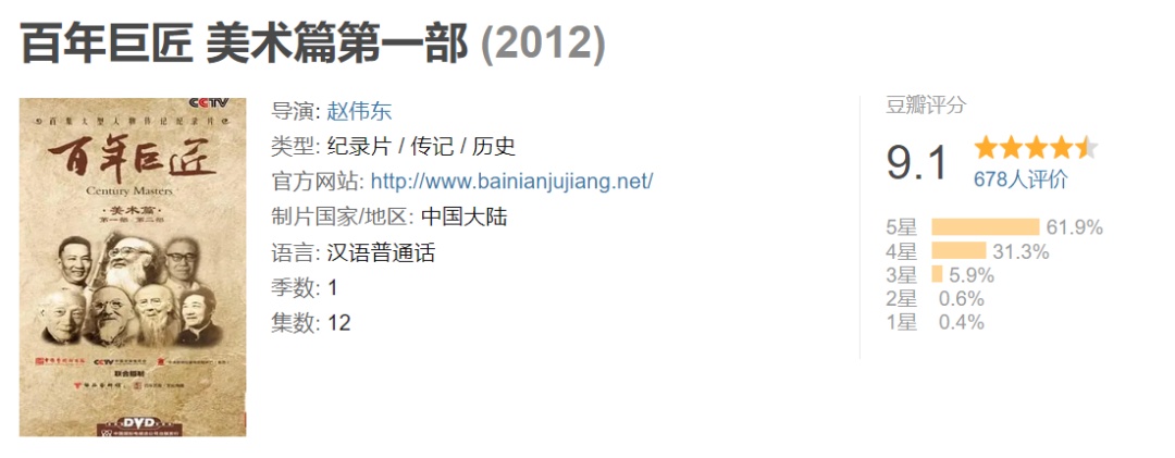 百年巨匠是由央视、中央新影、银谷艺术馆联合摄制的大型人物传记纪录片,呈现了齐白石,徐悲鸿,黄宾虹,张大千等绘画巨匠的传奇人生和非凡艺术历程。