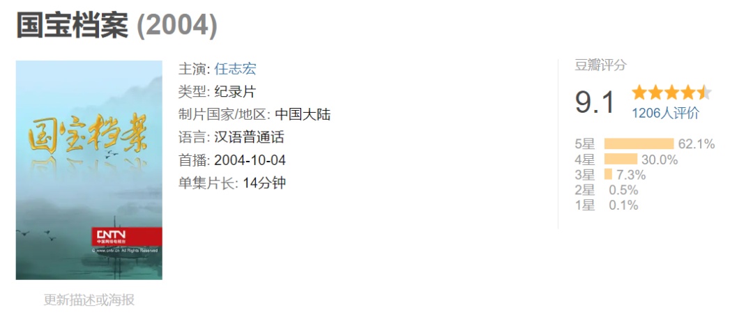 《国宝档案》栏目通过对国宝级文物的去向和传承轨迹进行实地跟踪拍摄,以强烈的纪实感和现场感给观众第一手的资料,带领观众走近国宝,探寻国宝的秘密。