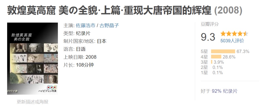 该片系统挖掘整理了莫高窟、榆林窟壁画中数以万计的古代乐舞图像,全面展示了中古时期上下1000多年间中原和西域的音乐舞蹈发展历程,生动再现了佛国世界和世俗乐舞的壮丽景象。