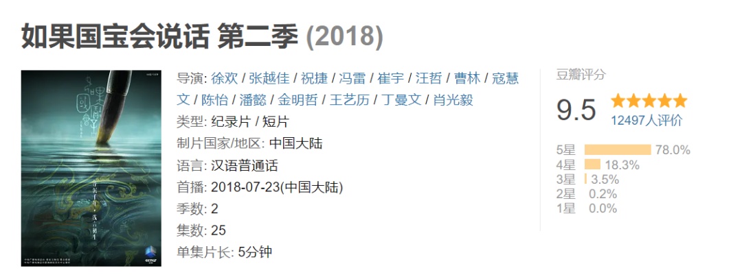 《如果国宝会说话第二季》介绍了战国到秦汉时期的25件国宝,该季展示的国宝,从思想、文化、科技等多个方面对文明进行了展示,以更加包容、大气的视野和态度解读中华文明。