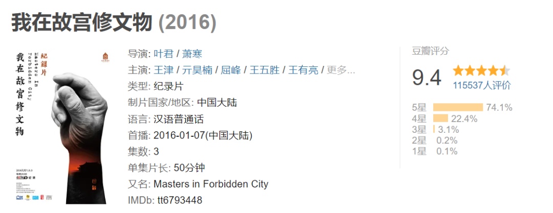 从故宫博物院建院那一天起,一代又一代文物修复师走入紫禁城的红墙,通过他们化腐朽为神奇的妙手,将生命的活力重新注入一件件文物之中。这些修复师们甘于寂寞,甘于平淡,在与文物的对话中小心翼翼感受着来自古代的微弱的脉搏。文物有灵魂,有生命,它们和人类的内心大美紧紧相连。