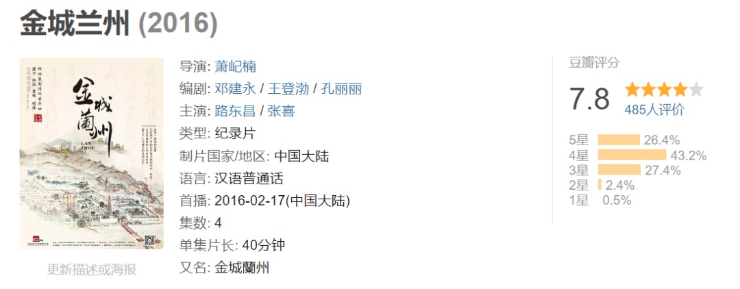 影片讲述了兰州这座城市从古至今的发展历史--从建城的契机,丝路时期的兴盛,清朝末年的工业发展,到建国初期的全国援建……从不同年代、不同身份的历史人物角度出发,刻画出一部详实,感人的历史风情画。