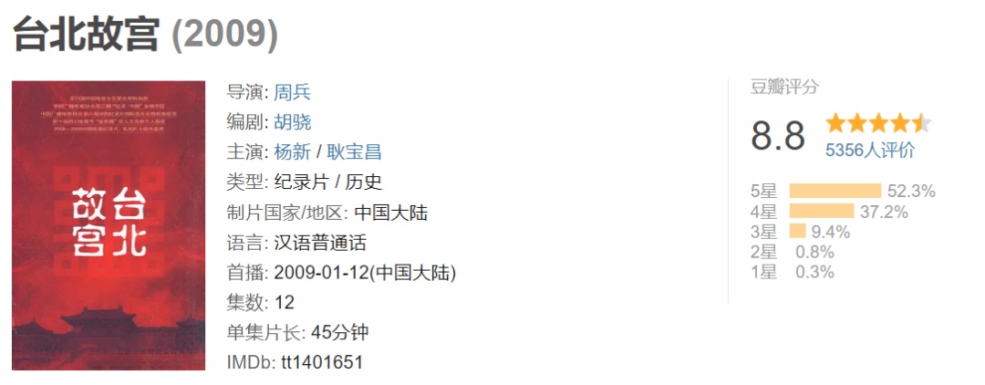 《台北故宫》涉及历史和当代,重在展现中国上下五千年来人类文明的发展,以及历史文化的流迁。台北故宫保存着中国历代帝王数百年来苦心积聚的千年艺术珍宝,是整个中华民族五千年文明史的缩影。