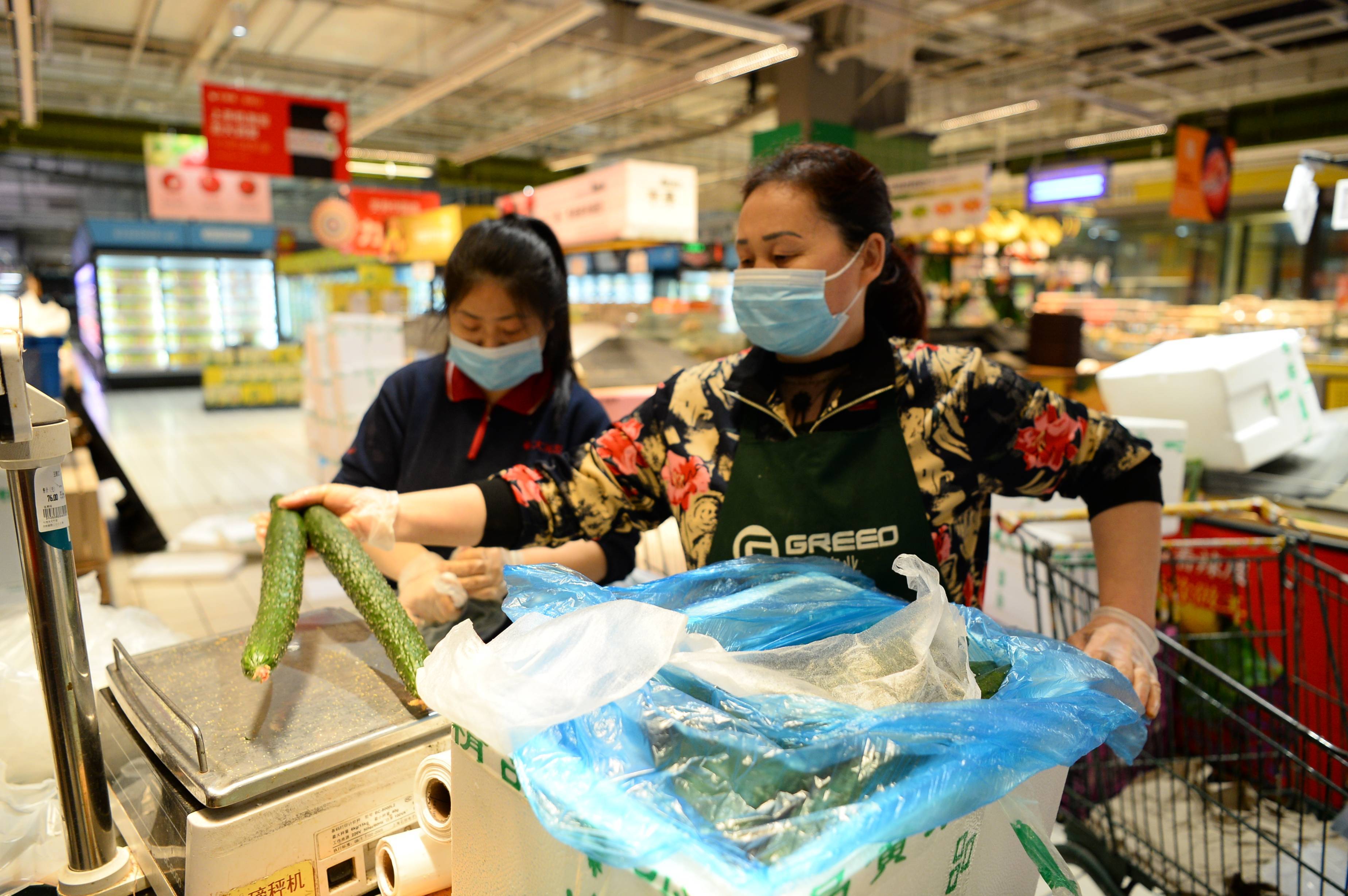 今年3月新一轮疫情突发以来,大润发大宁店持续运营,加大了肉、蛋、菜等民生商品和消毒防护用品的订货储备和调度,并开通社区集单、团购等多种线上渠道,为周边居民提供蔬菜、水果、肉品等生活物资的配送,工作量是平时的两到三倍。