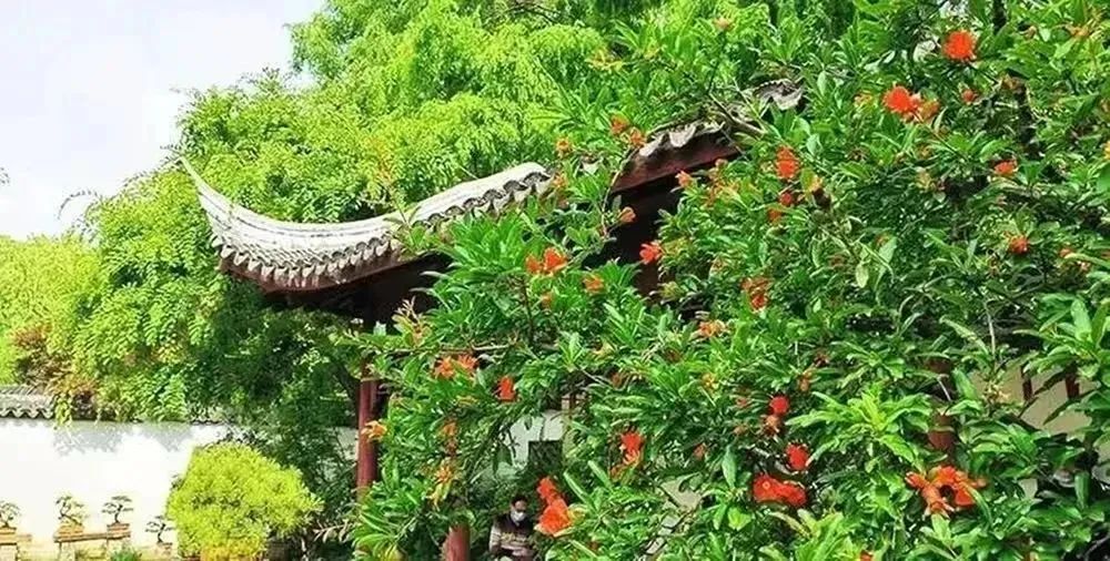 “火红的石榴花象征着喜庆、红火,寓意美好。一直以来,园内种植的石榴树都深受市民喜爱。”园方介绍,其中,盆景园内的石榴花更是让人啧啧称奇,只见数盆黄色、红色等各色榴花缀满了整棵老桩,在粉墙的映衬下,为这座江南古典园林的静雅之美增添了几分活力和动感。