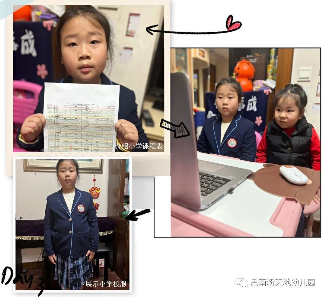 大一班赵晓悦小朋友的姐姐和杨铠瑜小朋友的哥哥,分别就读于卢湾一中心小学的二年级和三年级。此次云见面,两位小学生展示并讲解了小学课程表和小学的校服。对于小朋友们最想了解的作业量、上学需要带的课本、每天要上的课程,以及午休、个人物品的整理等问题,两位小学生也一一作答。