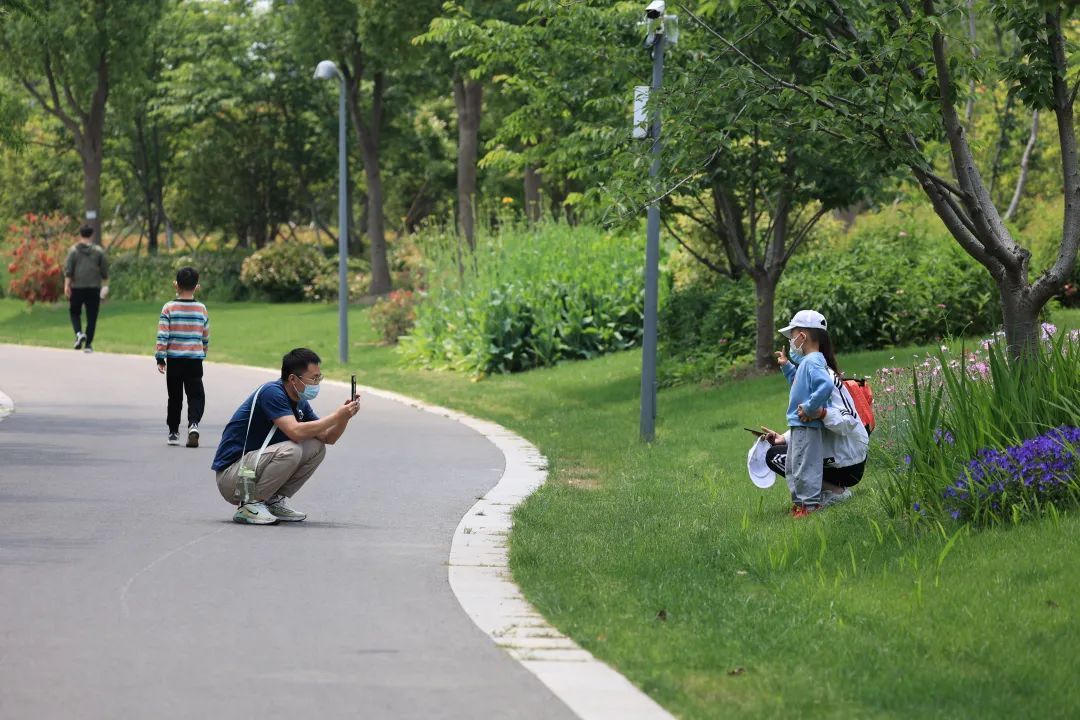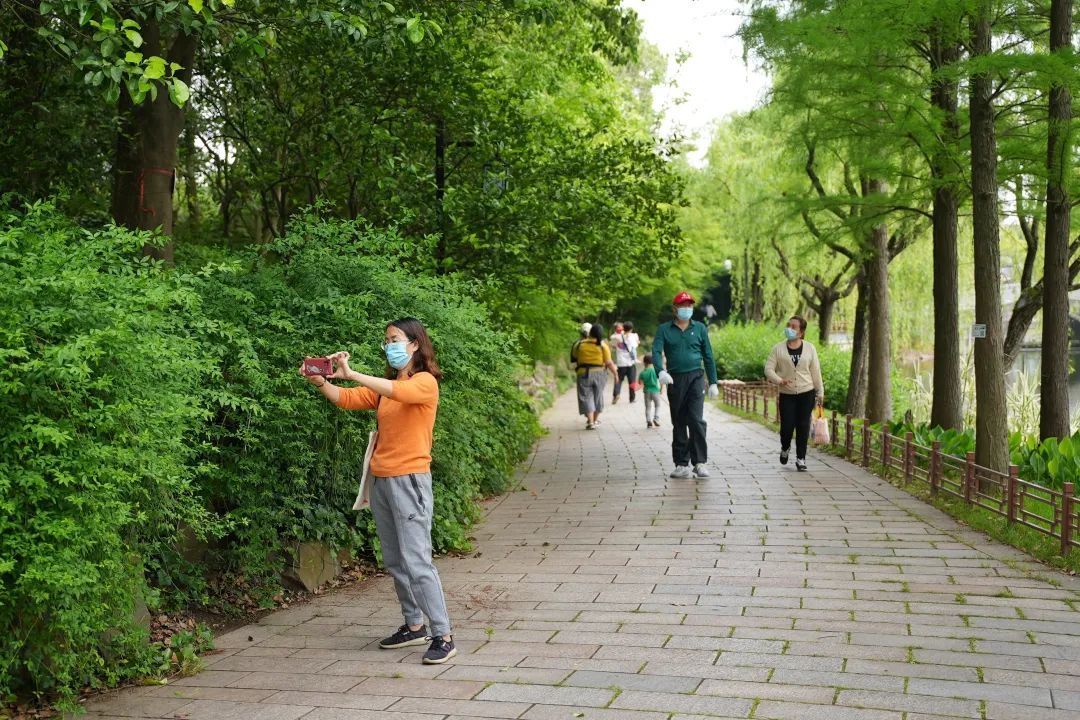 一位市民拍了不少照片,他告诉记者,因为很久没来了,一听说今天开放就径直过来逛逛了,顺便分享公园美照给朋友们。“看到这个绿意盎然的景色,我心情真的是畅快了很多,很激动。”还有一位带着宝宝出门的市民直呼,“宝宝一直嚷嚷要去公园,今天逛了一圈就感觉我们不在的日子里,树果然是长得更好更茂盛了。”