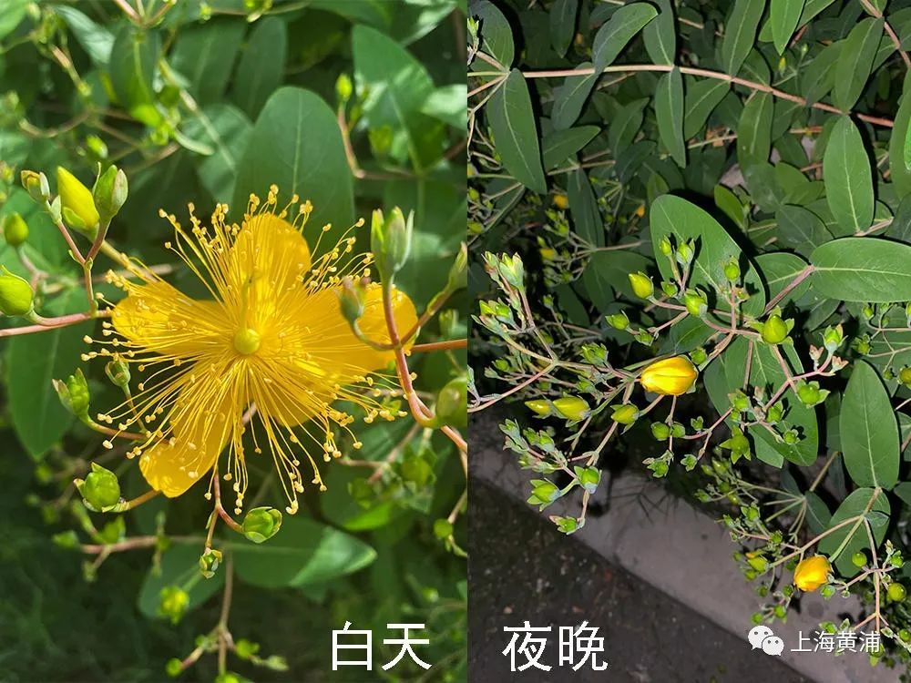 比如这个金丝桃,硕大的花瓣中间还带着浓密漂亮的花丝,在阳光下闪烁着耀眼的金光;而到了夜间,它们却集体闭合存储实力等待白天的光合作用。