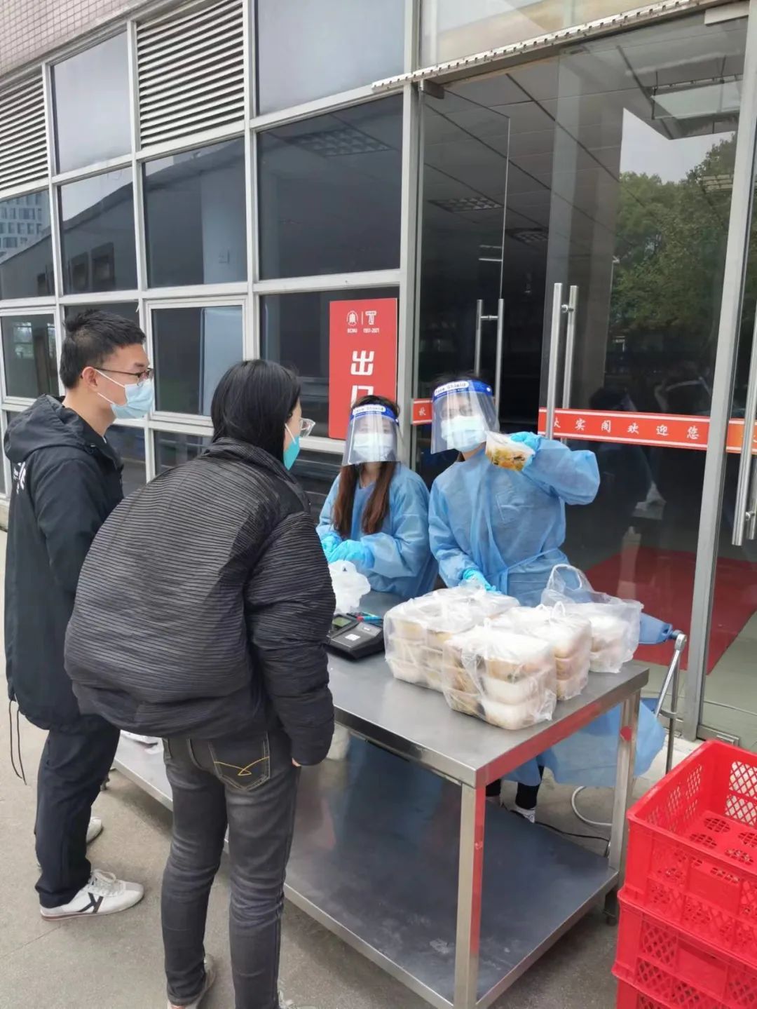 由于学校的夏雨厅食堂出现了异常,教研块区按照楼宇包干的方式成立了送餐队,各个楼宇的师生志愿者轮流为整个本科生和研究生块区送餐。