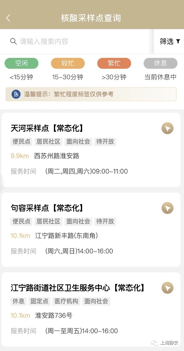 服务入口:打开“随申办”APP、“随申办”微信、支付宝小程序,首页点击【核酸采样点】进入。