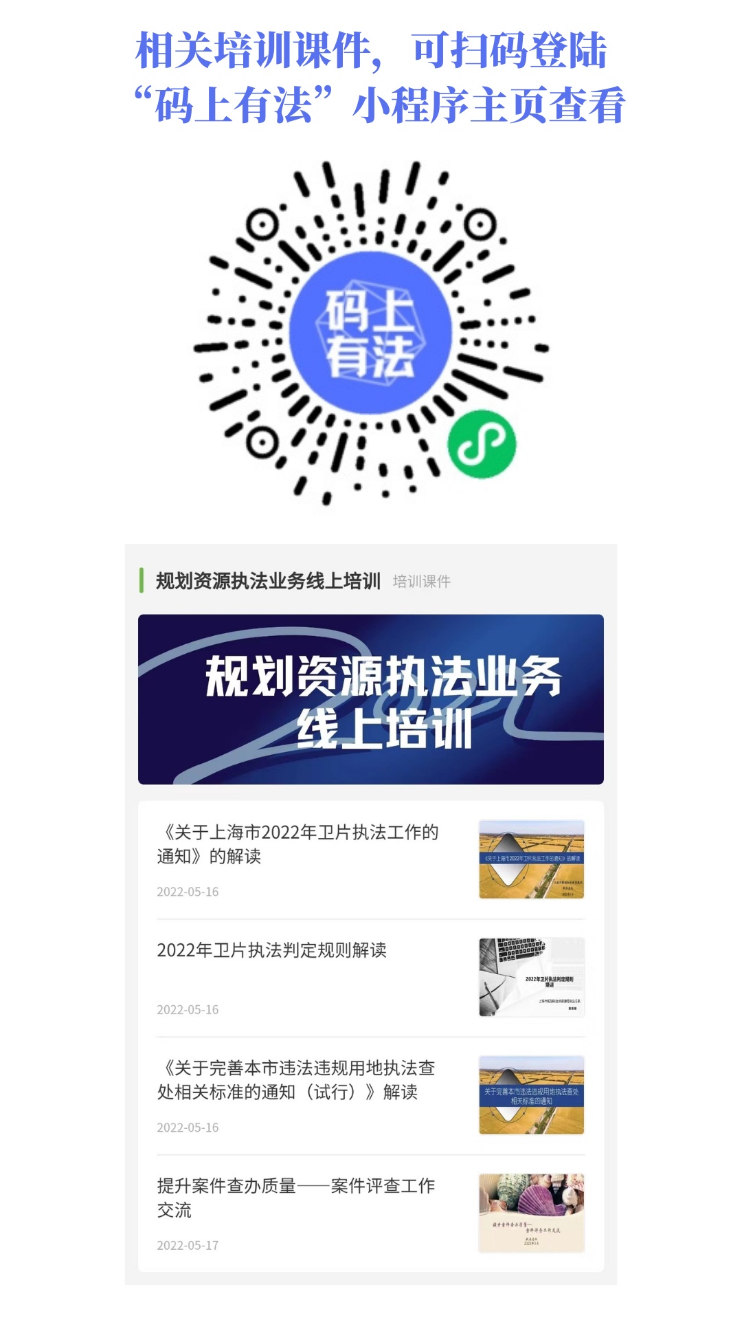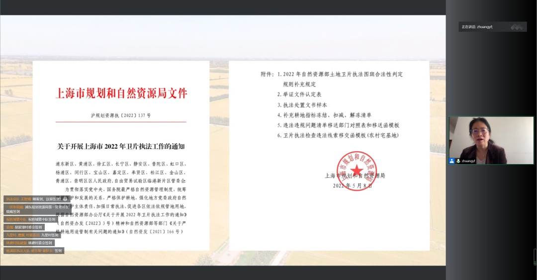 今天的培训可谓干货满满,让我们在原本被疫情打乱的工作之余有了更多地机会与时间进行业务知识的补充和提升。通过十余年来卫片工作的变化,由中央至地方为我们全面解读了《关于开展上海市2022年卫片执法工作的通知》,执法总队以图释文让我们更好地体悟和理解今年卫片执法工作中的新变化。下午两位骨干专家为我们执法一线及村镇土地管理基层普及了卫片执法判定规则和违法用地查处标准,参会人次达到2000余人,不仅仅为我们下一步规划资源执法工作明确了方向,更是一次成功的耕地保护政策宣贯。