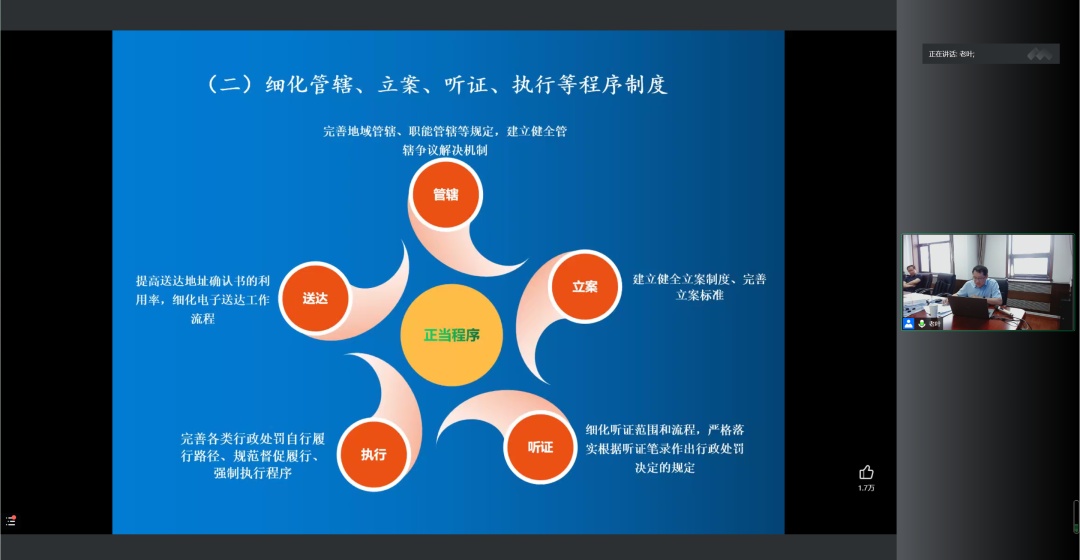 自然资源部执法局执法监督一处叶春波处长围绕新版《行政处罚法》实施后的自然资源执法形势、任务及立案查处重点,进行深入浅出的辅导授课,推动全市规划资源“文明执法、公正执法、规范执法”,内化于心、付诸于行,贯彻到底、落实到位。