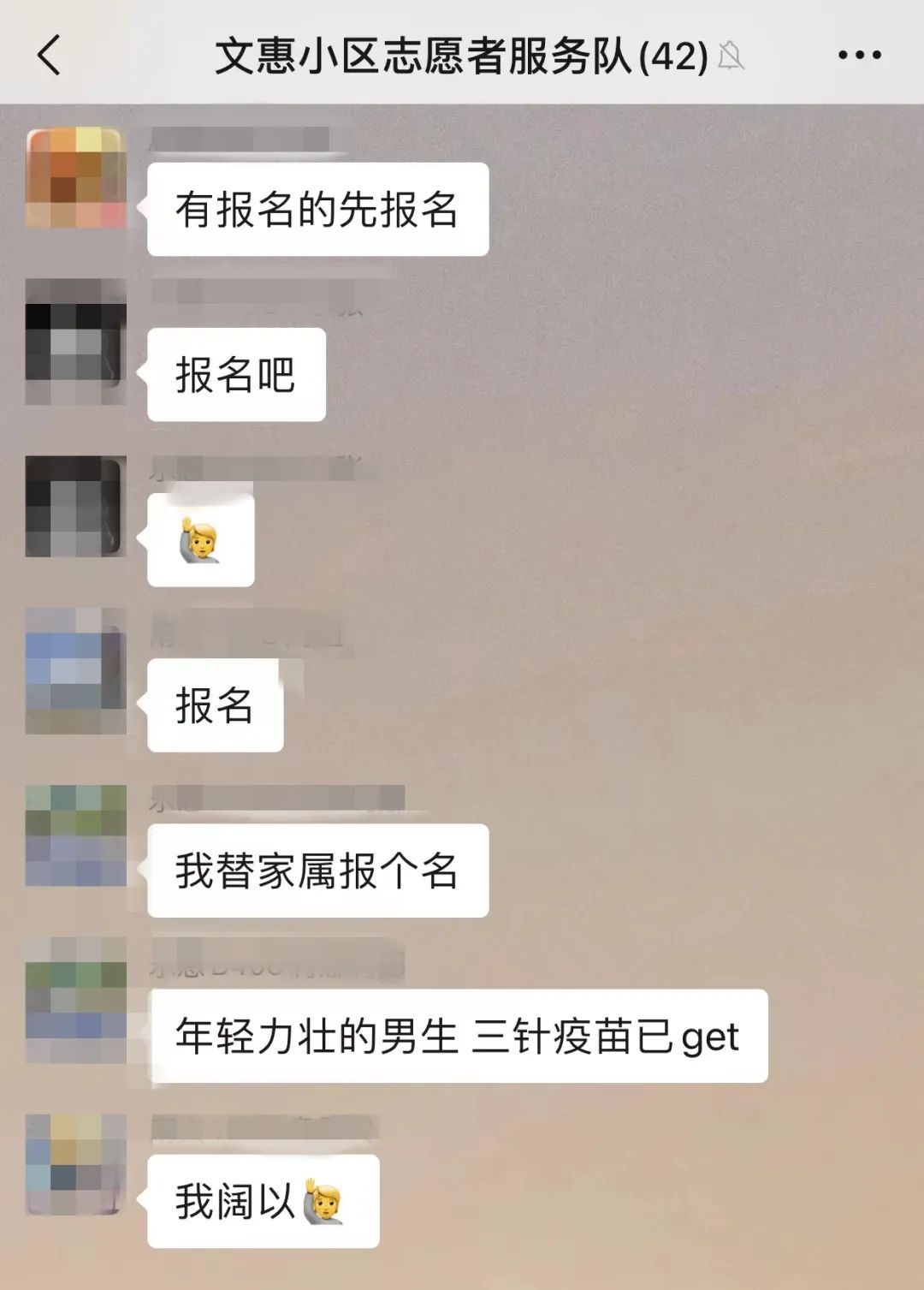 在文惠小区志愿者微信群,志愿征集名额“秒杀”场景几乎每天都在上演。