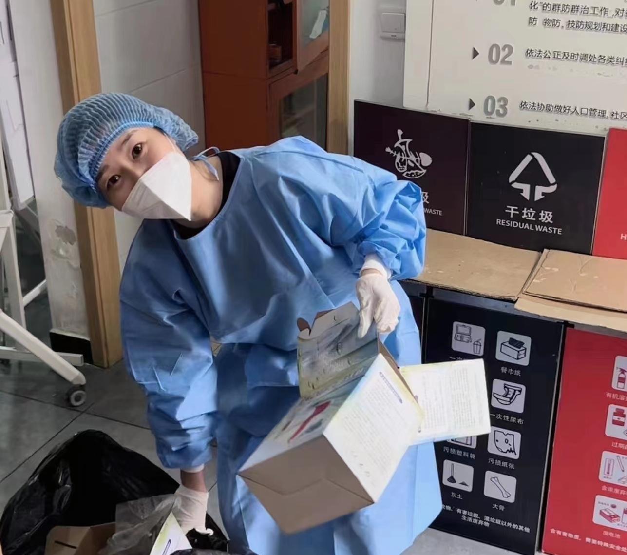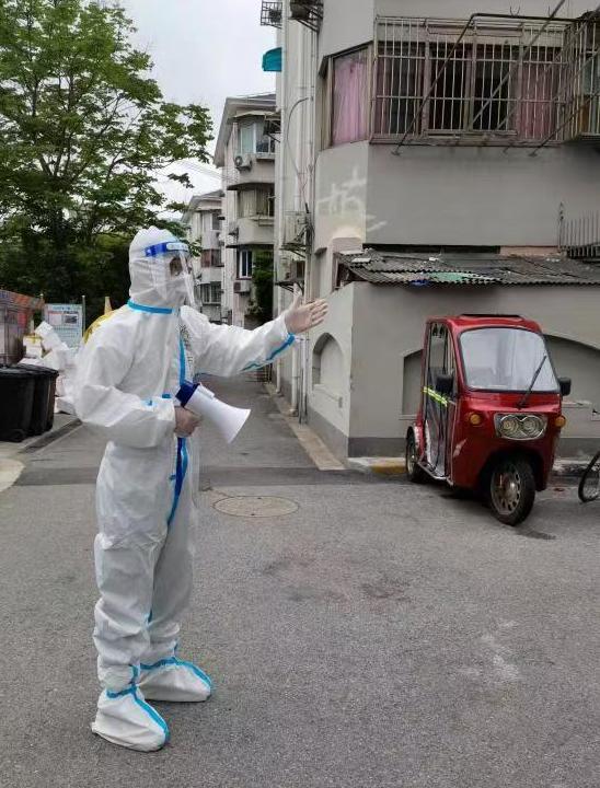 从入驻曹家渡街道高荣社区的那一刻起,赵印敏集中精神投入。运送防疫物质、转运分发支援食品、社区环境消杀、辅助医务人员采样,每一项工作他都想尽办法提高效率。为了尽可能不浪费防疫服,“大白”防护服一穿就是八个小时,忍住不喝水、不上厕所,干枯的嘴唇、超负荷工作已是每日常态。