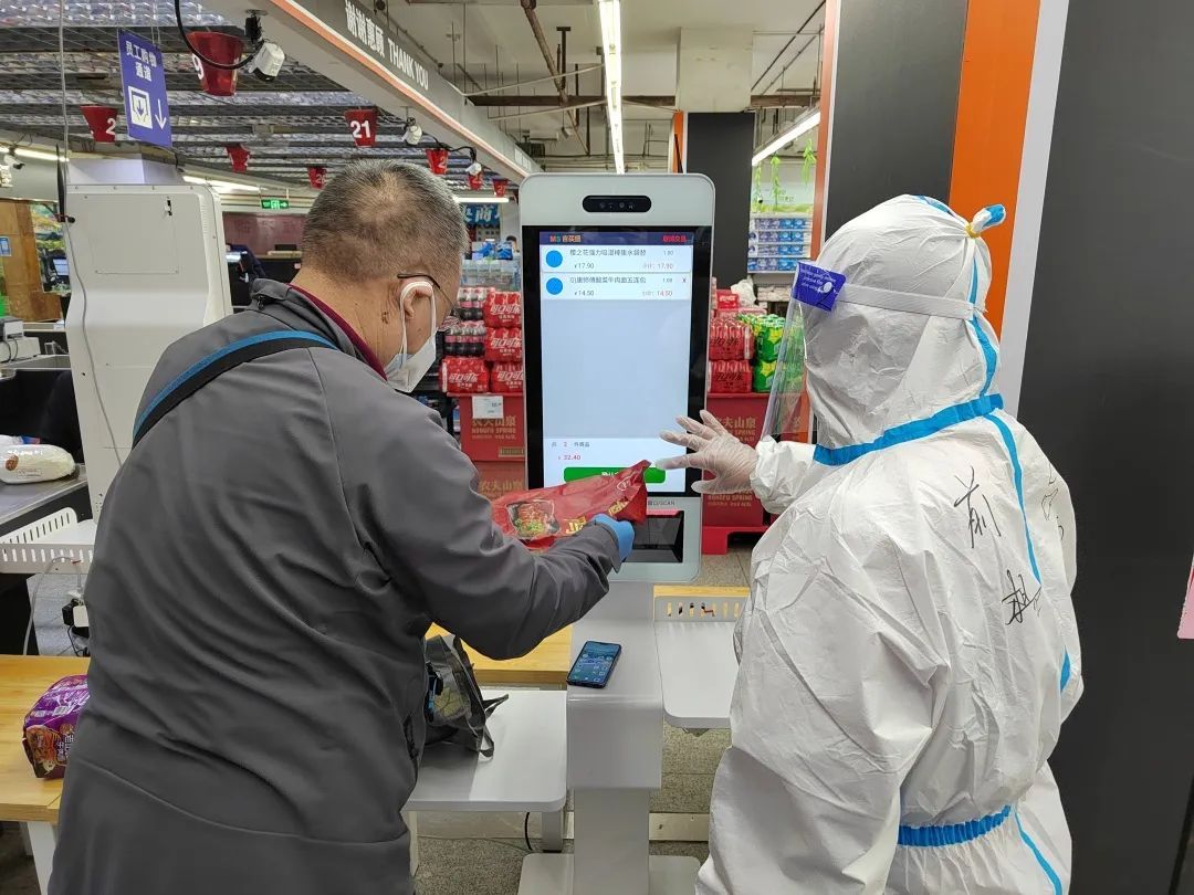人员上,超市紧急召回了20名员工,与之前住店的29名员工一起进行48小时闭环管理,同时对所有在店人员每天进行核酸、抗原检测,保证全员核酸、抗原双阴性。货源保障上,超市在公司紧急协调下,调配了大量的蔬菜、鸡蛋、猪肉等食材,洗发水、洗手液等日用品,同时考虑到季节变化还上架了一些凉拖之类的夏季生活用品。开业前夕,员工加班加点对货物进行消杀、上架,并检查原先货架上商品的保质期,撤下过期商品进行销毁,保障供应商品的数量及质量。在疫情防控方面,超市提前部署好场所码及“数字哨兵”,为避免结账时产生人员聚集,超市在6名收银员外加急配置了3台自助收银设备,保证9条结账通道可以同时开放。为应对突发状况,超市和街道方面还制定了应急方案,准备了应急药品,规划了“临时观察点”,有医护人员现场值守。