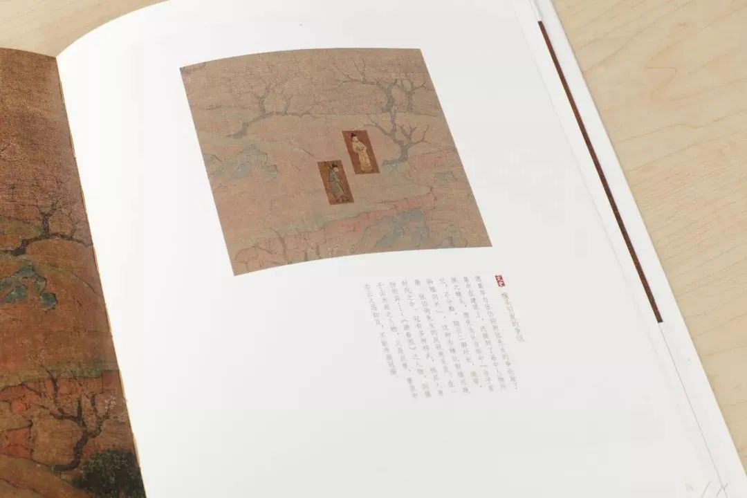 游春图,绢本设色,纵43厘米,横80.5厘米,现藏故宫博物院。画卷描绘了古时春游的情景,虽在料峭的初春,寒意尚存,和煦的春光却让游人心动,情不自禁的闲不入景。展子虔通过精妙细腻的笔触,在绢素上将初春时节人们喜悦的心意幻化为重叠交融的山峦幽谷、溪水林泉、微雨繁花,封存在历史的烟云中。当游春图在今日被缓缓展开时,随之扑面而来的是清新质朴,而又古老的春日气息,如同宋代词人苏轼在《一丛花(今年春浅腊侵年)》中所描述的那般;“朝来初日半衔山,楼阁淡疏烟。游人便作寻芳计,小桃杏、应已争先。”
