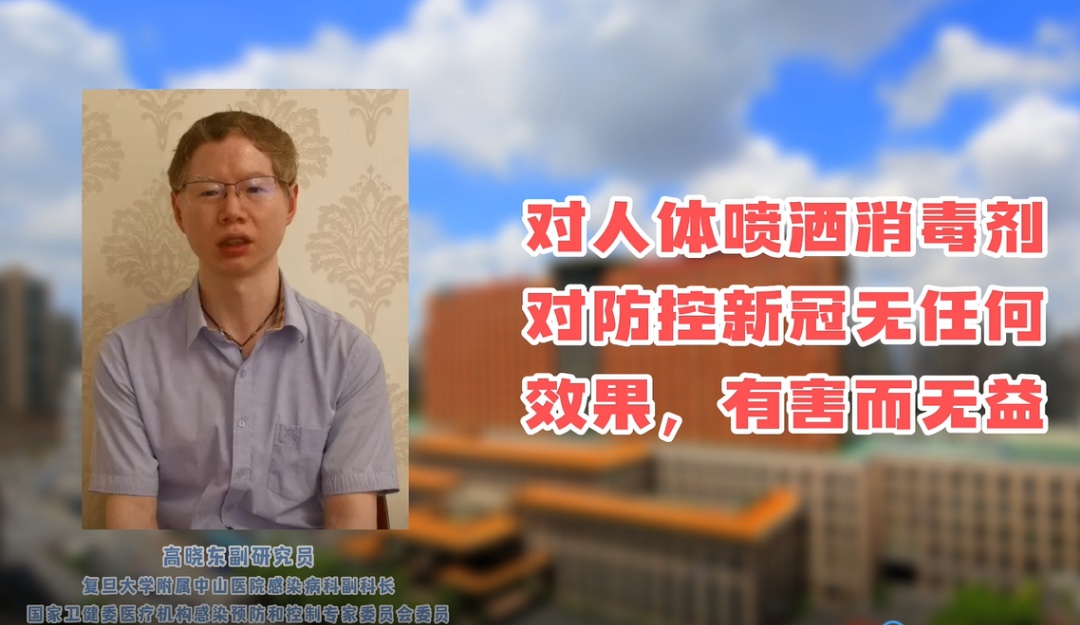 复旦大学附属中山医院高晓东副研究员谈“千万不要对人体喷洒消毒剂”!
