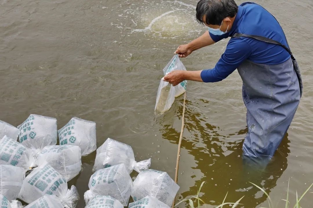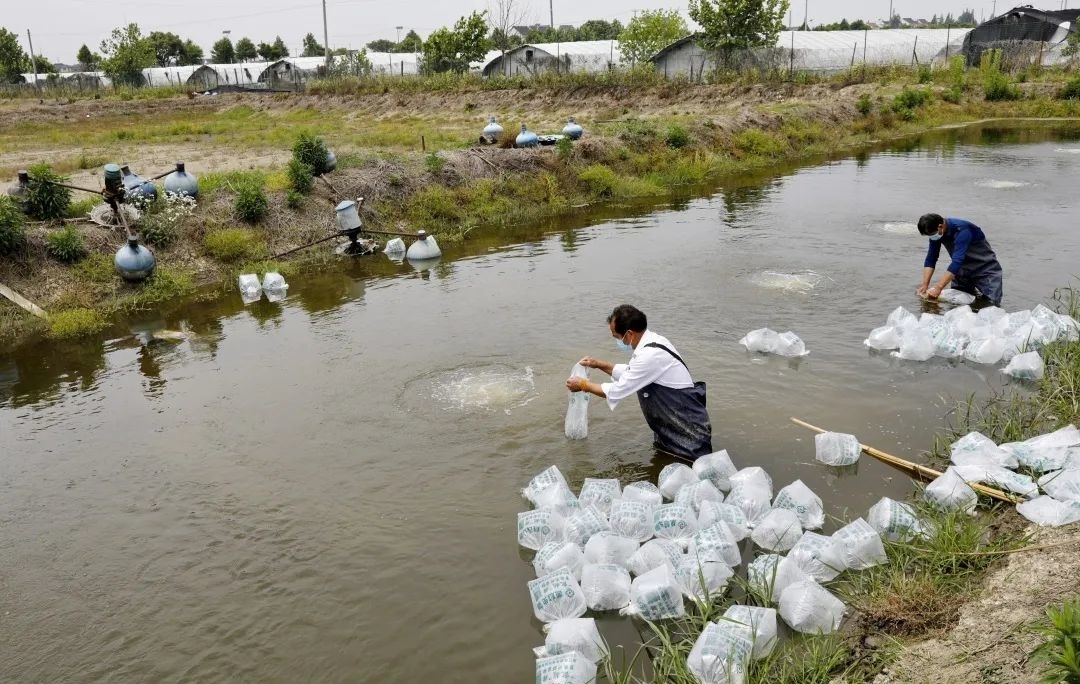 据了解,现场拿到虾苗后,顾金华已经马不停蹄将这45万尾虾苗运往合作社。一袋袋虾苗成功投放到早已消毒杀菌的虾塘,预计100天后,这批罗氏沼虾将集中上市,供应上海市场。