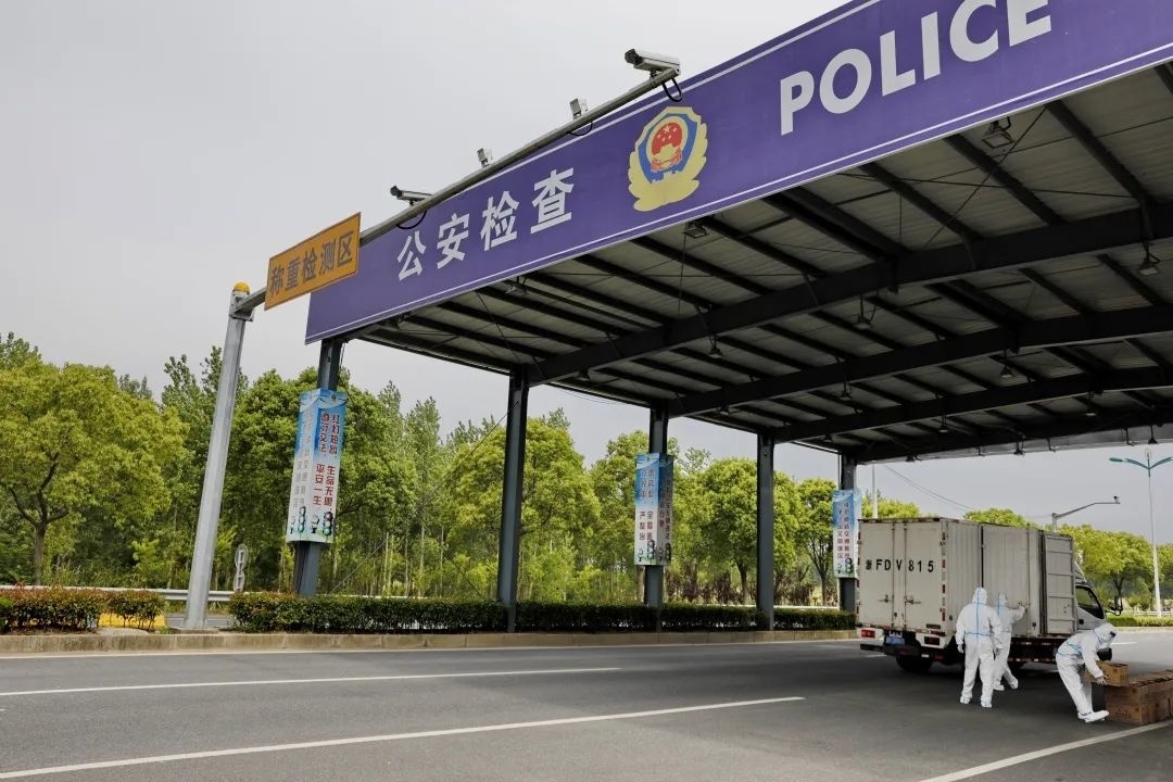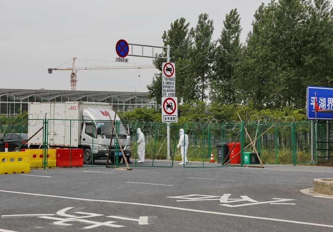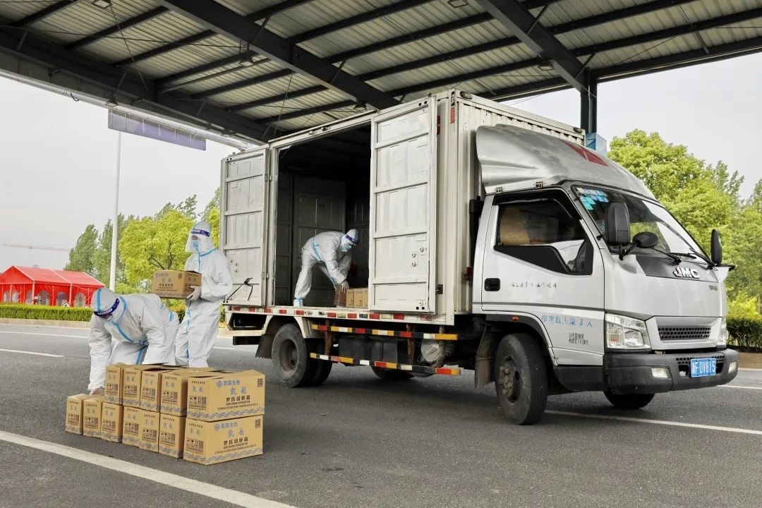 上午,在金山区廊下镇朱平公路省界道口,经过一个多小时的等待,一辆装载45万尾虾苗的货车顺利到达。现场,志愿者身穿防护服,全程无接触配送。在顺利拿到虾苗后,养殖户顾金华悬着的一颗心终于放下了。