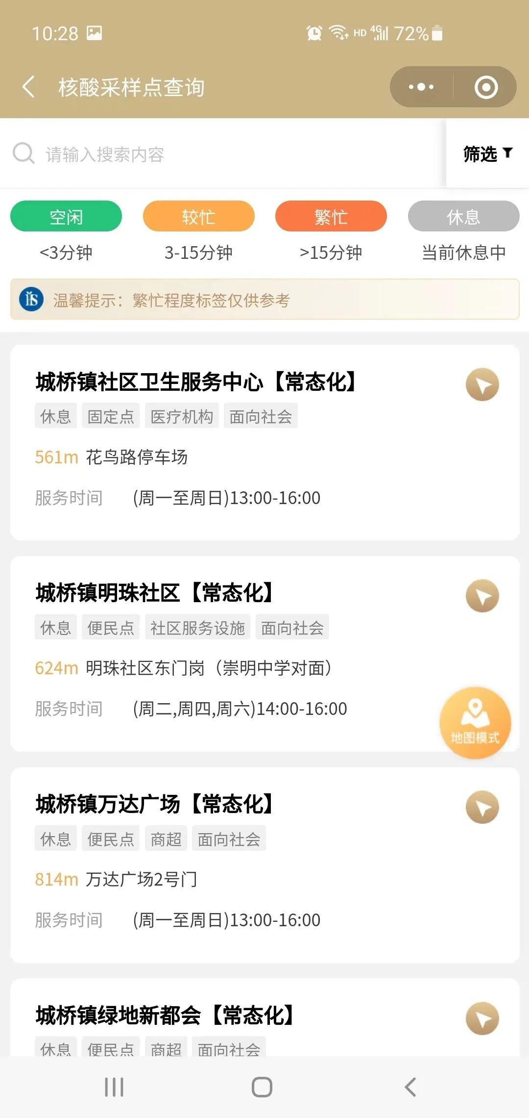 为满足市民就近进行核酸采样的需求,崇明区设立了217个常态化核酸采样点位。市民可通过“随申办”App或者小程序,查询就近的核酸采样点(详情点击“随申办”可查看全市常态化核酸采样点)。