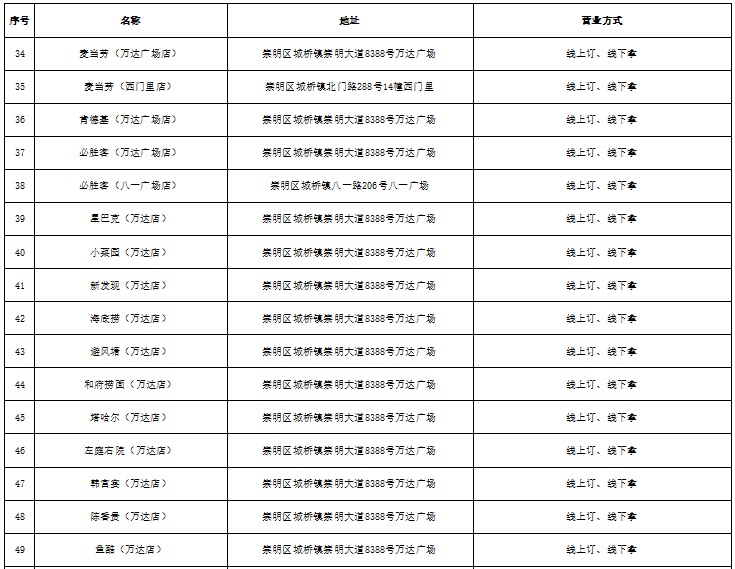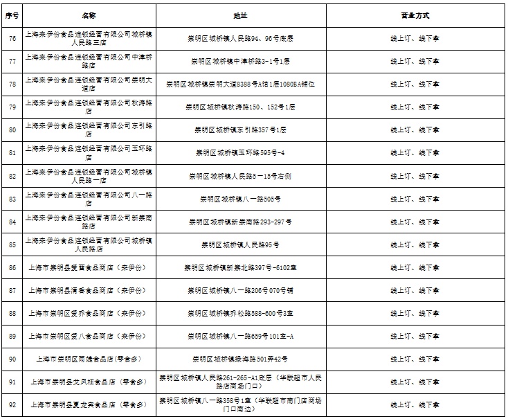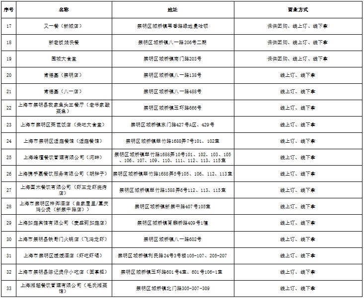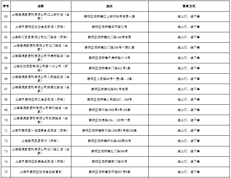 城桥镇商业网点恢复营业白名单(第一批)