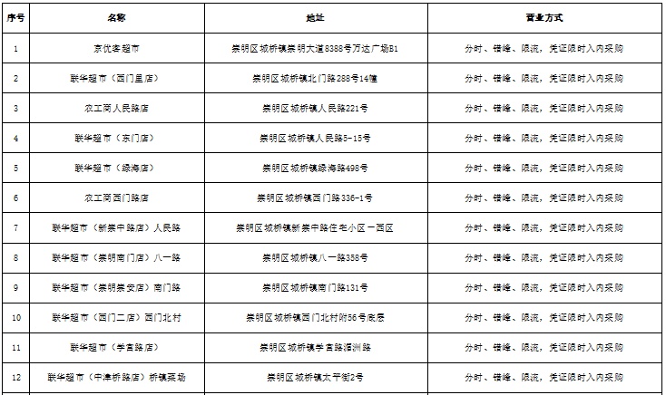 5月16日,崇明全区实现超市“有限开放”全覆盖。庙镇和新村乡集贸市场实现“有限开放”。