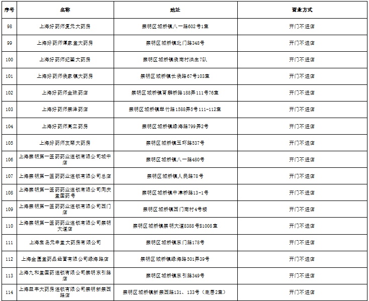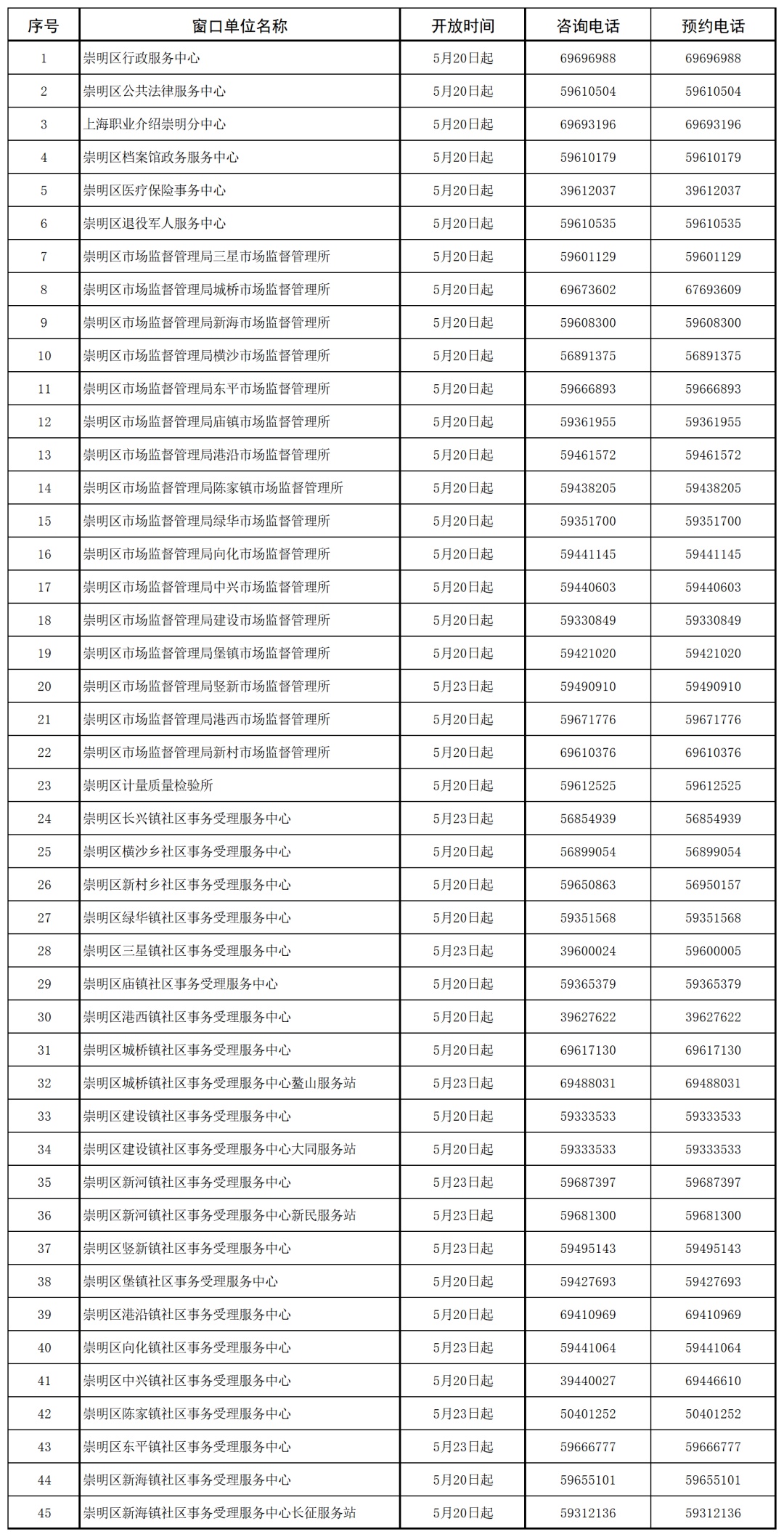 崇明区有序逐步开放政务服务窗口名单