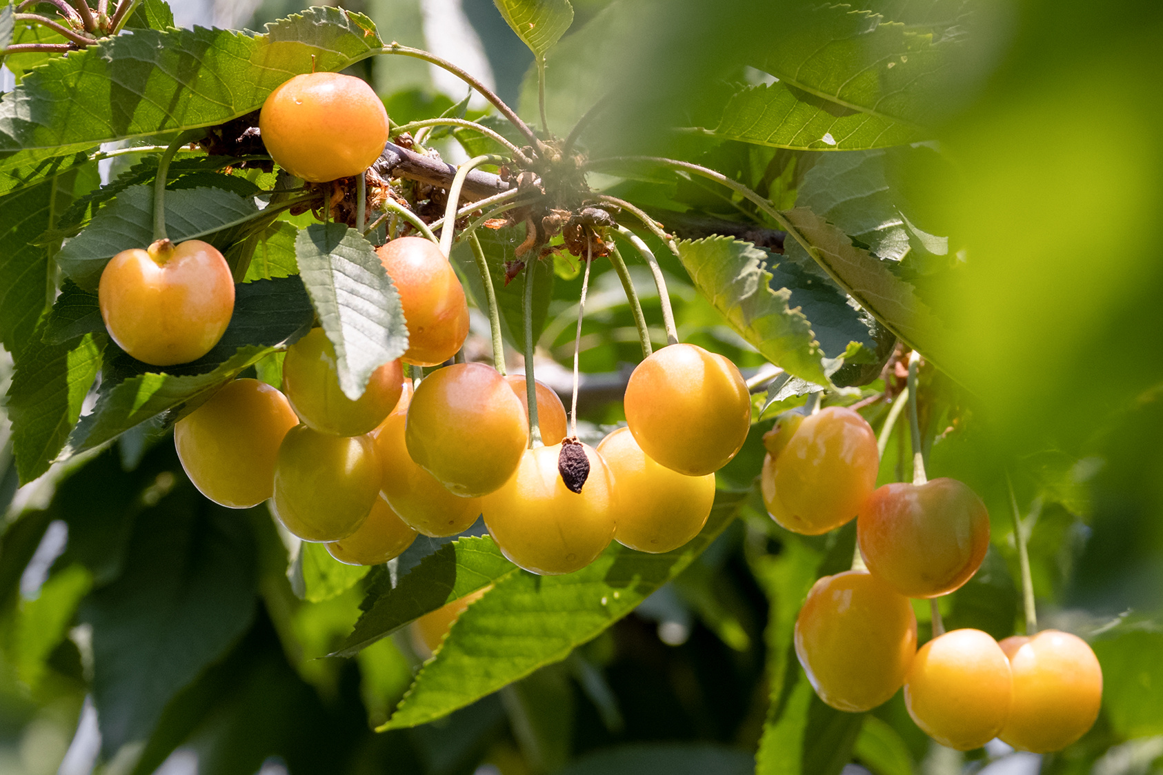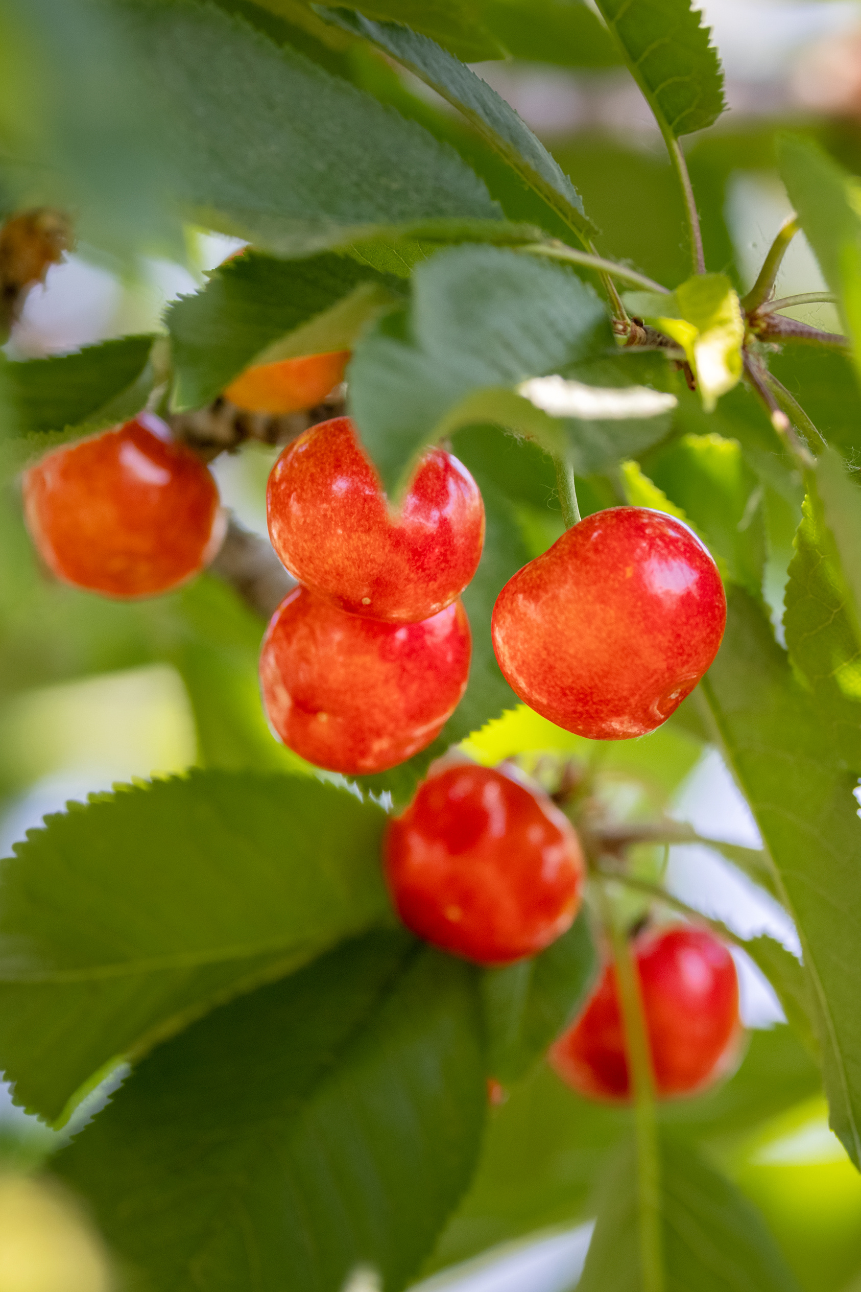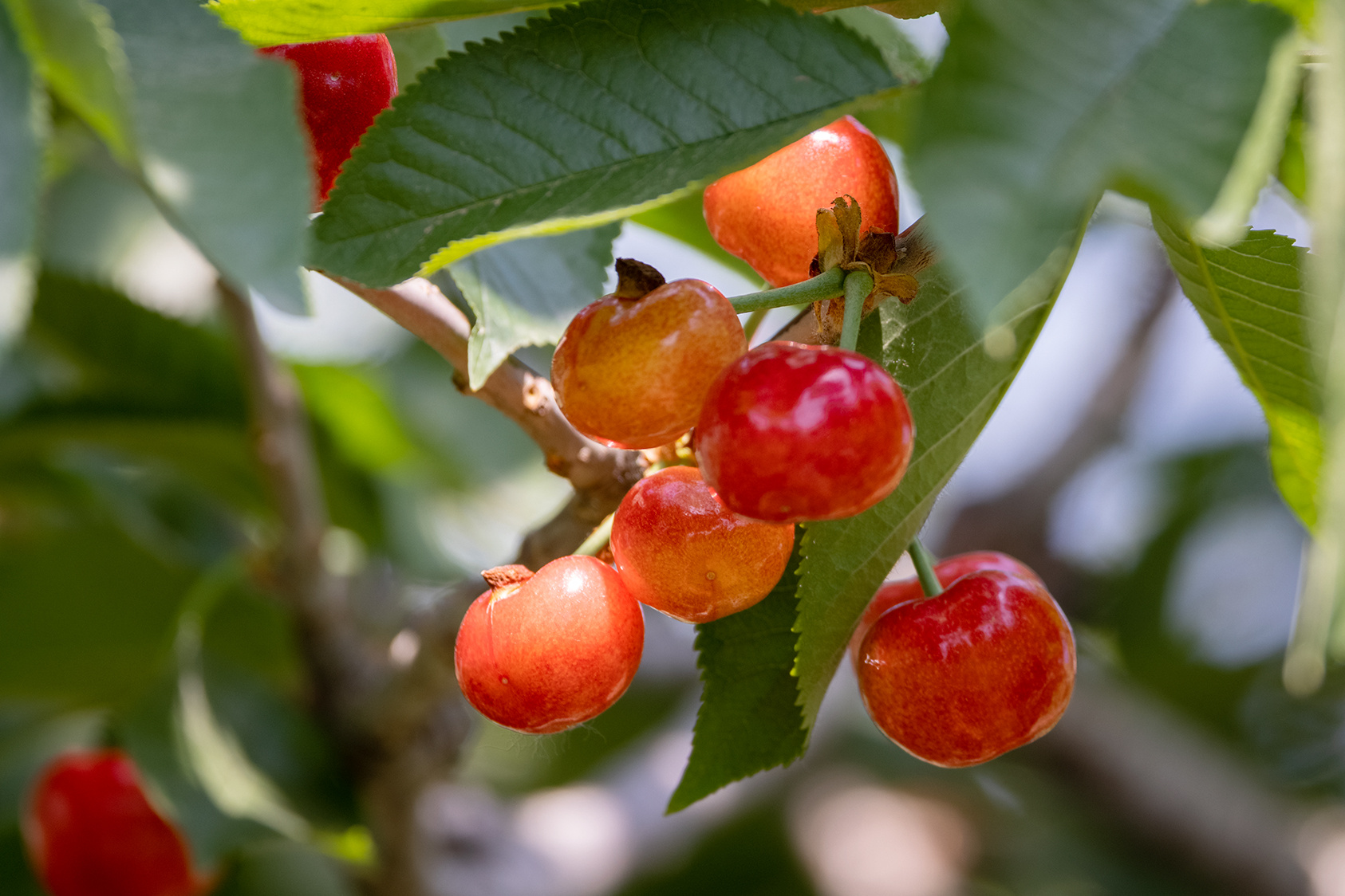 周末天蓝云白,不冷不热,驱车来到济南锦绣川水库西邻的艾家村樱桃园,红彤彤的樱桃在绿叶衬托下,宛如一颗颗红玛瑙挂满枝头,阳光下晶莹剔透,真乃五月最美丽樱桃红。边摘边品,甜中透酸带香,味道纯厚,回味绵长。当地果农说,因今年的天气异常,园子里的樱桃减产不少,但成熟的樱桃个头和味道比往年还好看好吃。(大众日报客户端记者 杨润勤 报道 摄影 张宝贤)